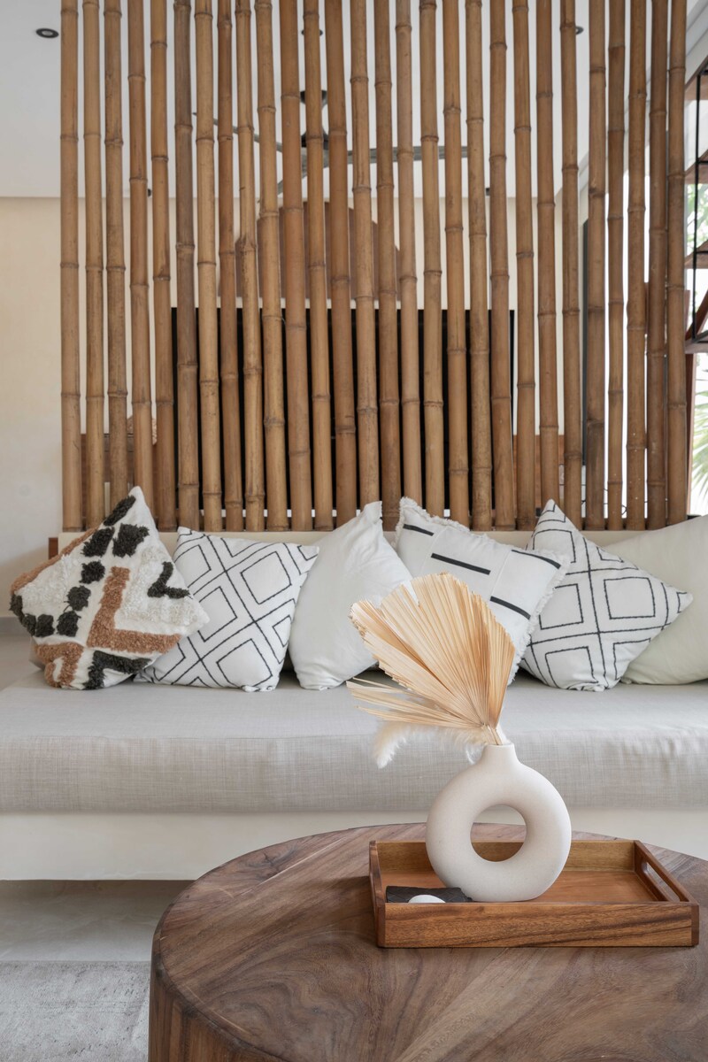 8 of 17: Custom Bamboo Headboard and Textured Decor Accents
