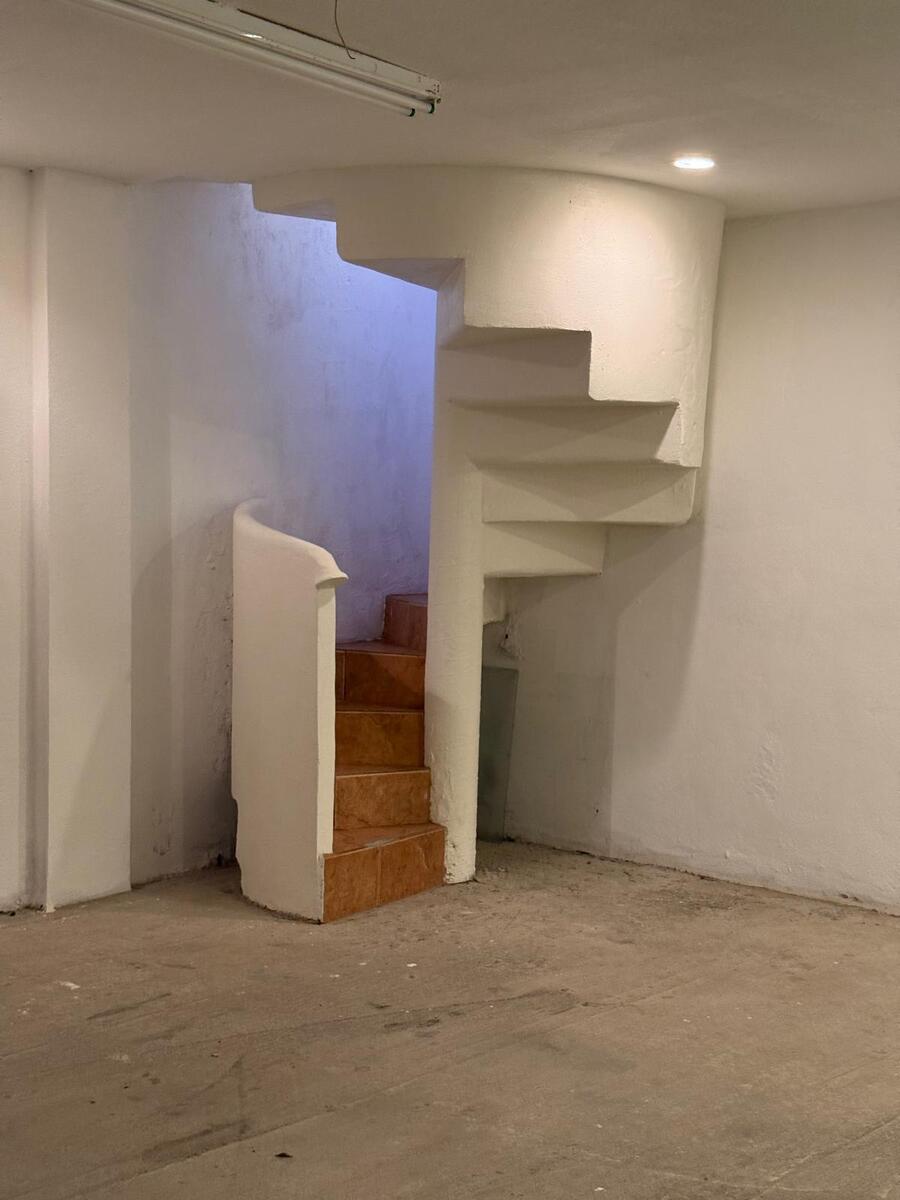 Spiral staircase with ornate wrought iron railing that adds architectural character and connects the levels seamlessly
