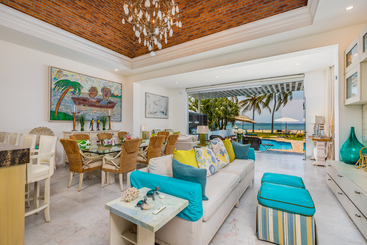 Su amplia sala con vista al océano, cocina equipada y terrazas exteriores integradas crean un ambiente de relajación y elegancia. El jardín, la alberca privada y las áreas de descanso frente al mar hacen de esta residencia una opción perfecta para vivir o invertir.
