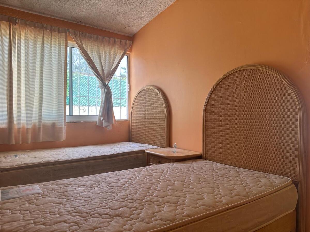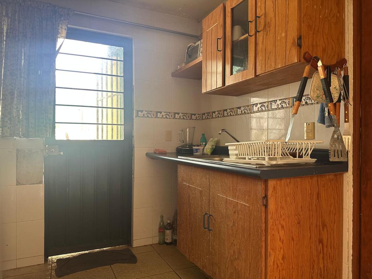 Casa construida en un solo nivel, cuenta con dos recamaras, dos baños completos, estudio, sala y comedor, cocina integral, patio, jardín y alberca, dos lugares de estacionamiento