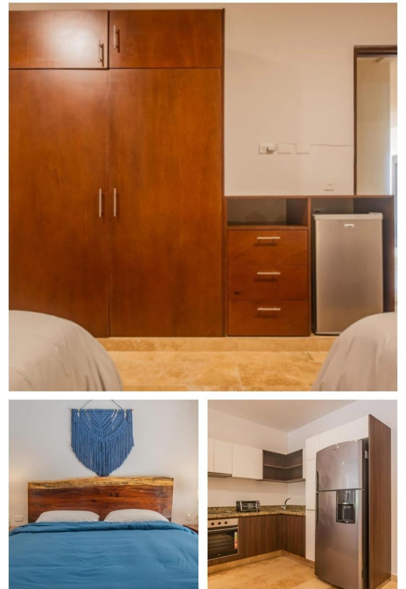 Departamento de 2 recamaras, cocina con refrigerador y horno, TV de pantalla plana, zona de estar y dos baños con ducha.