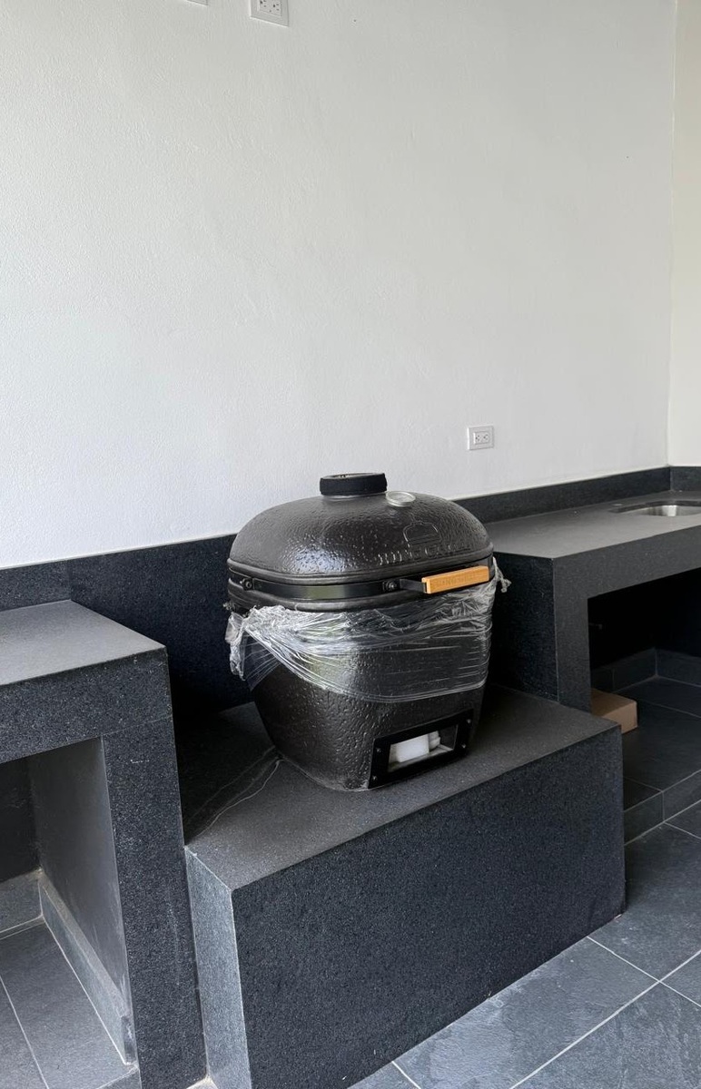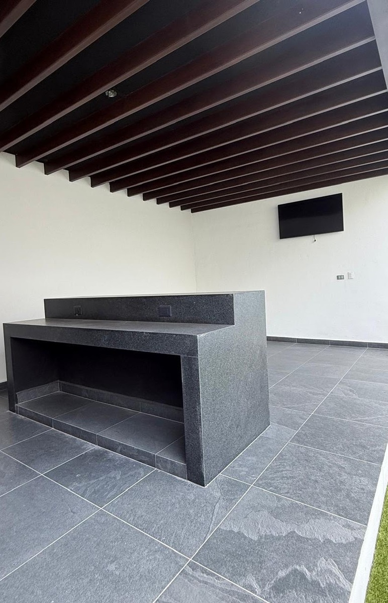 - Área de grill techada (palapa) con barra y contra-barra de granito