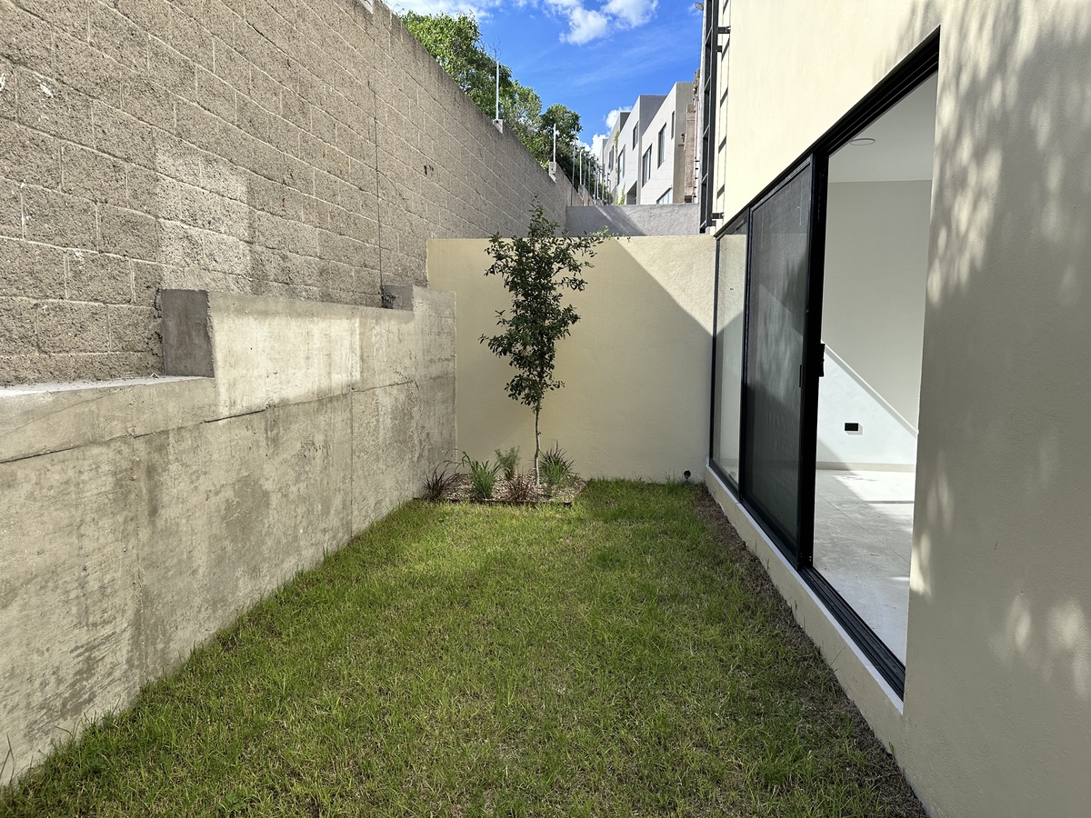 sala/comedor al jardín; cocina con lavavajillas y torre de hornos. Estudio PB con baño, área de TV y cto. de servicio.
