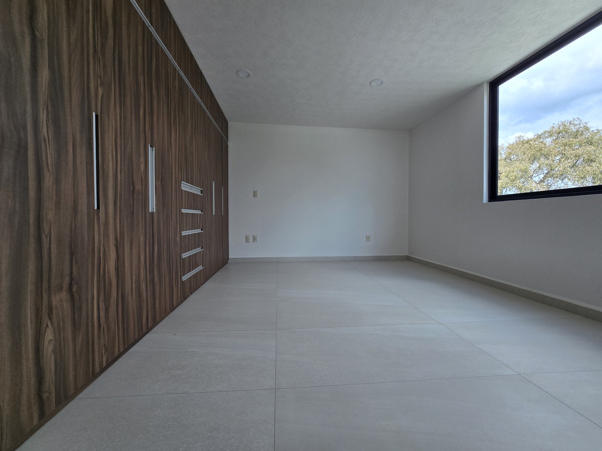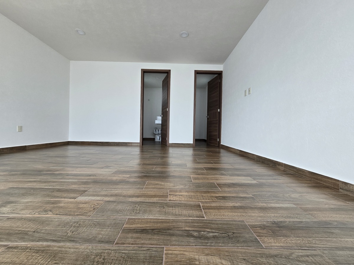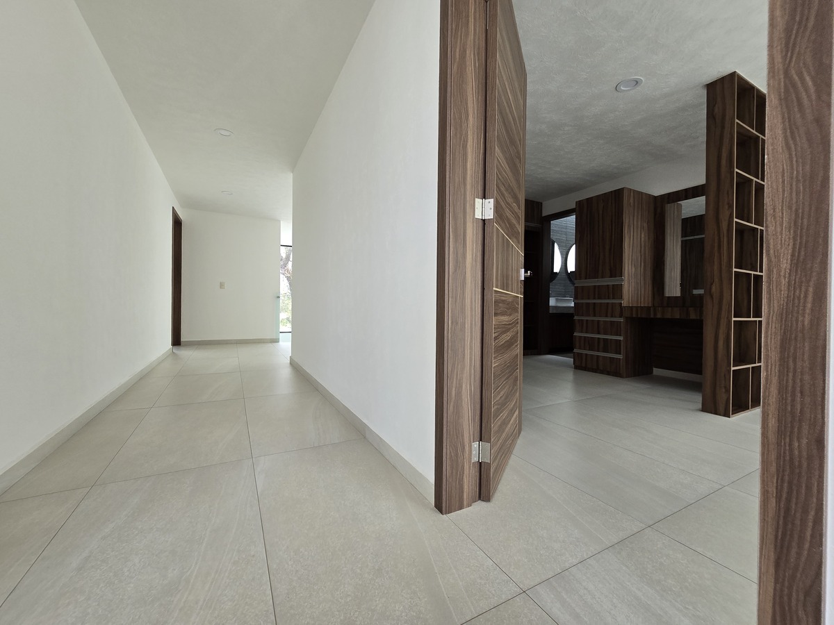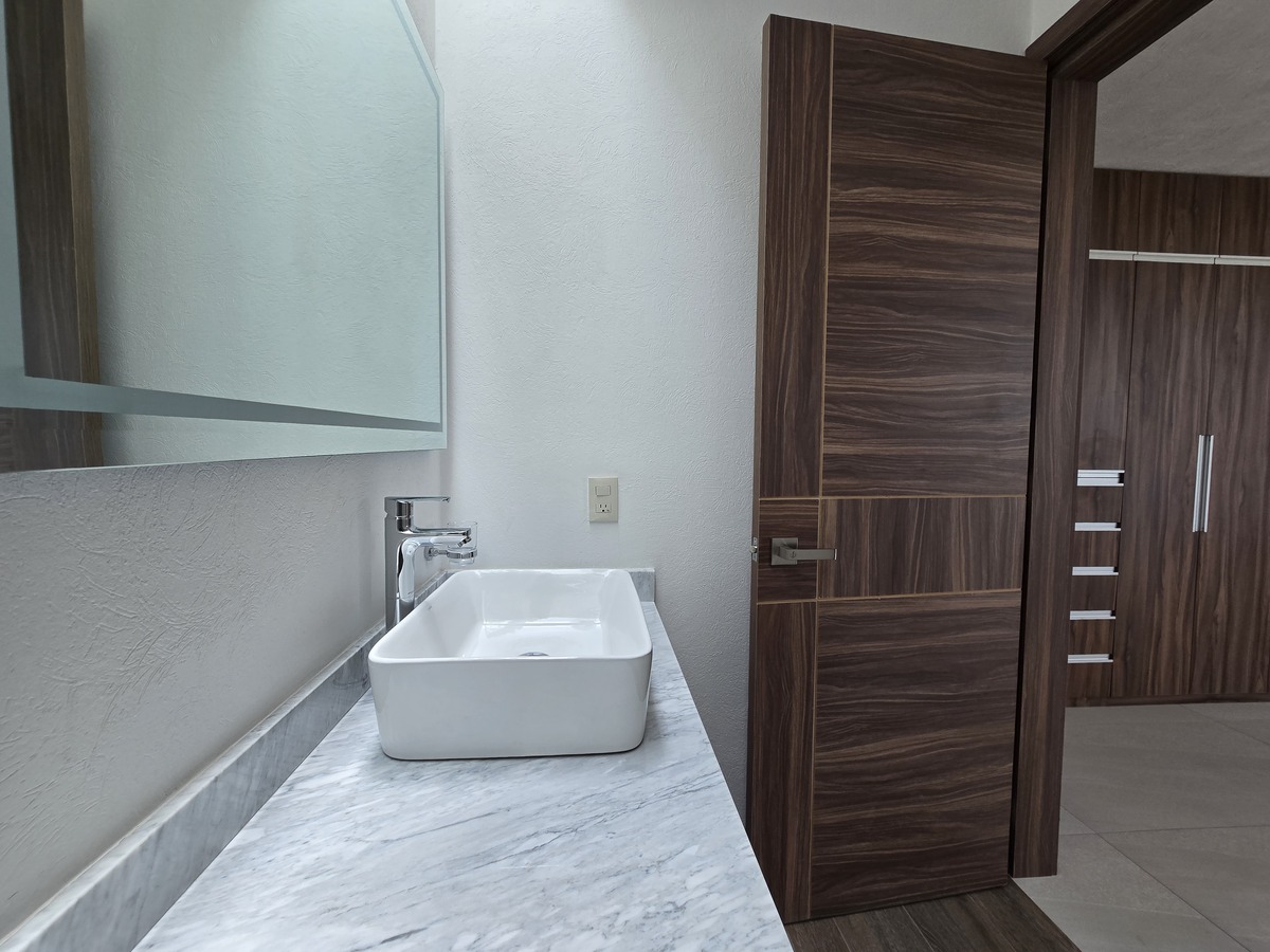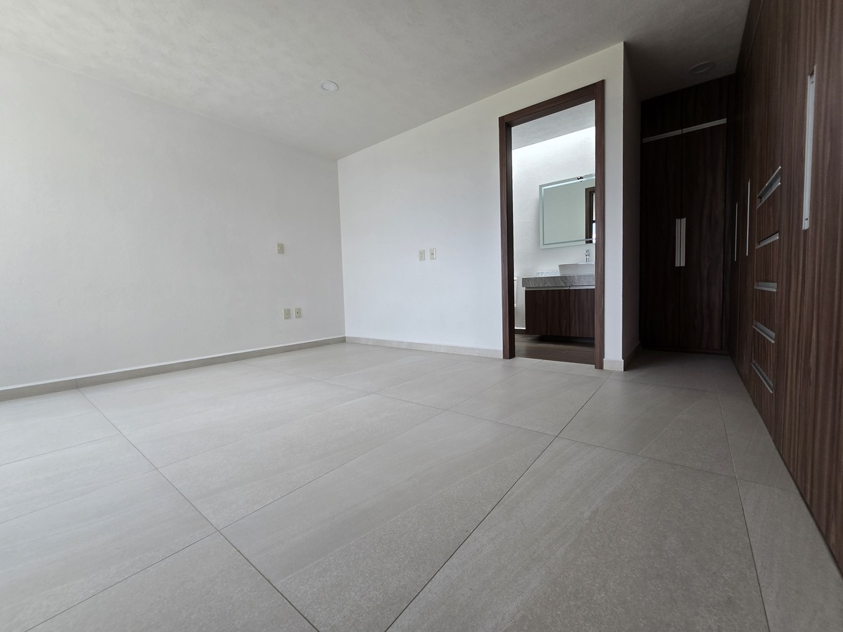 Cuatro recámaras en total, cada una con baño completo y clóset, y la principal con vestidor, balcón y doble lavabo.