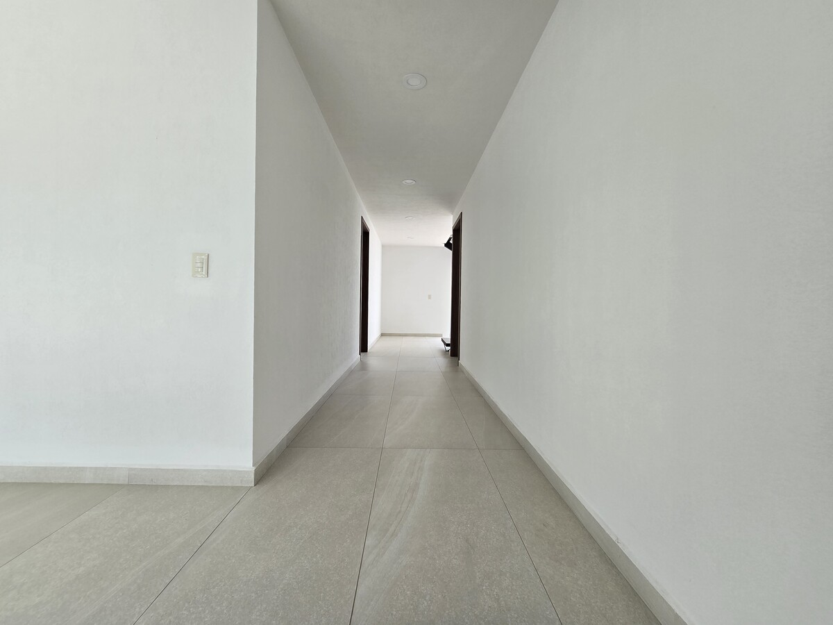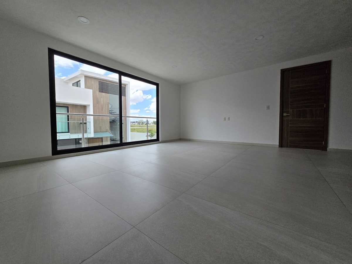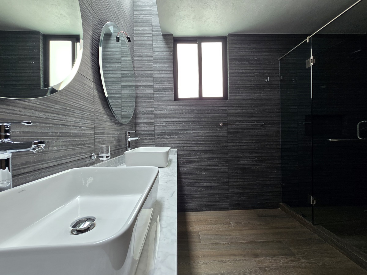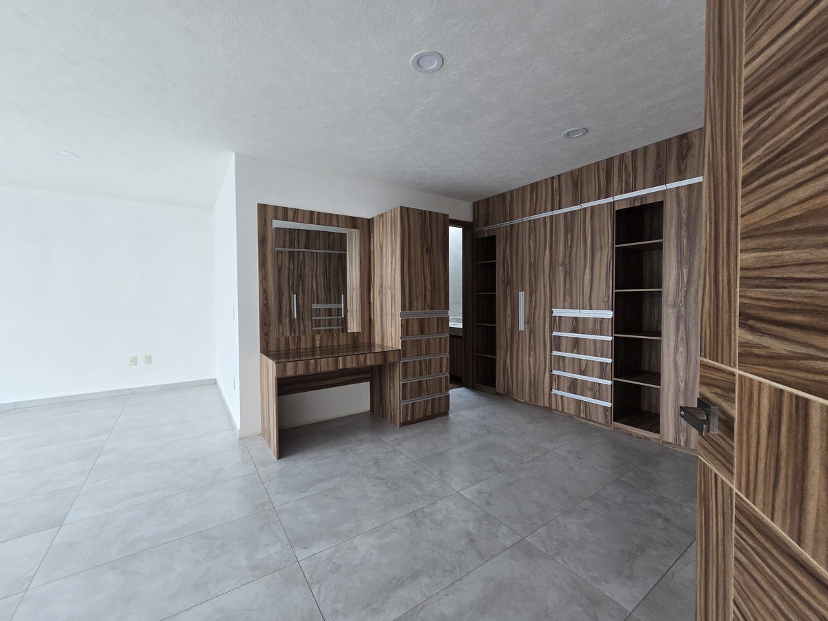 Cuatro recámaras en total, cada una con baño completo y clóset, y la principal con vestidor, balcón y doble lavabo.