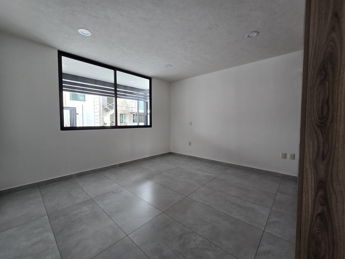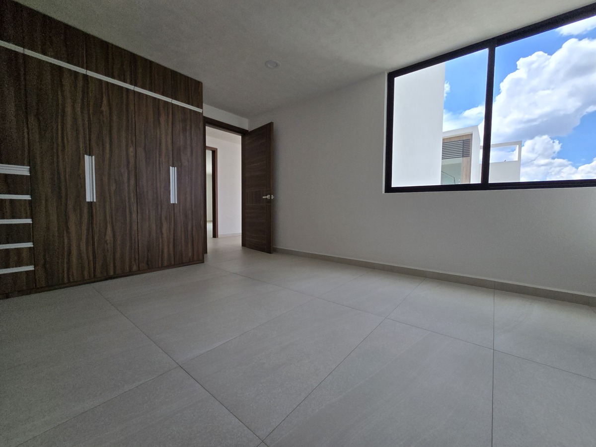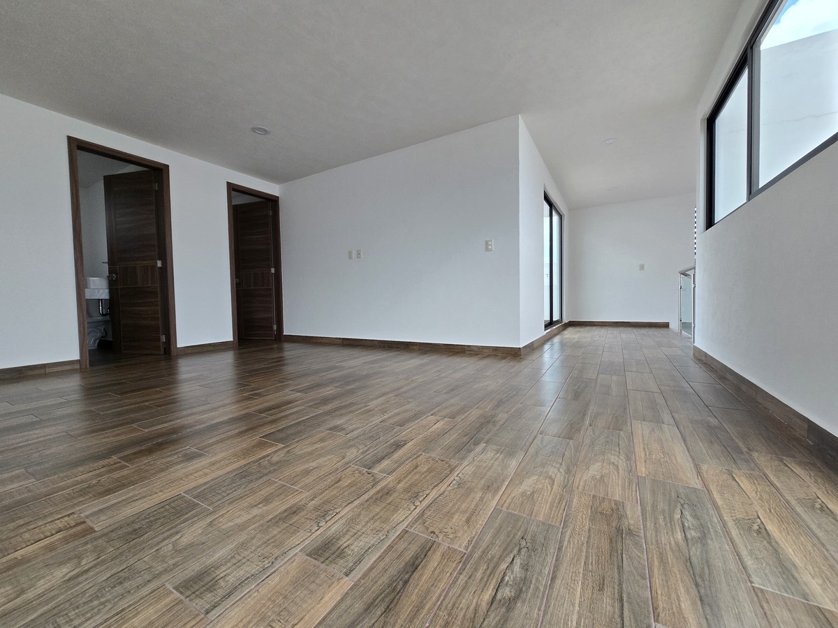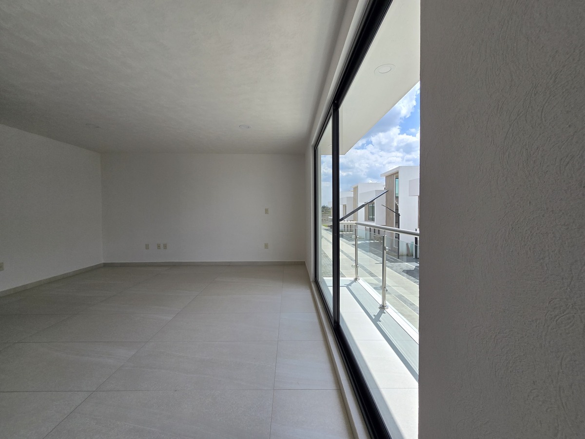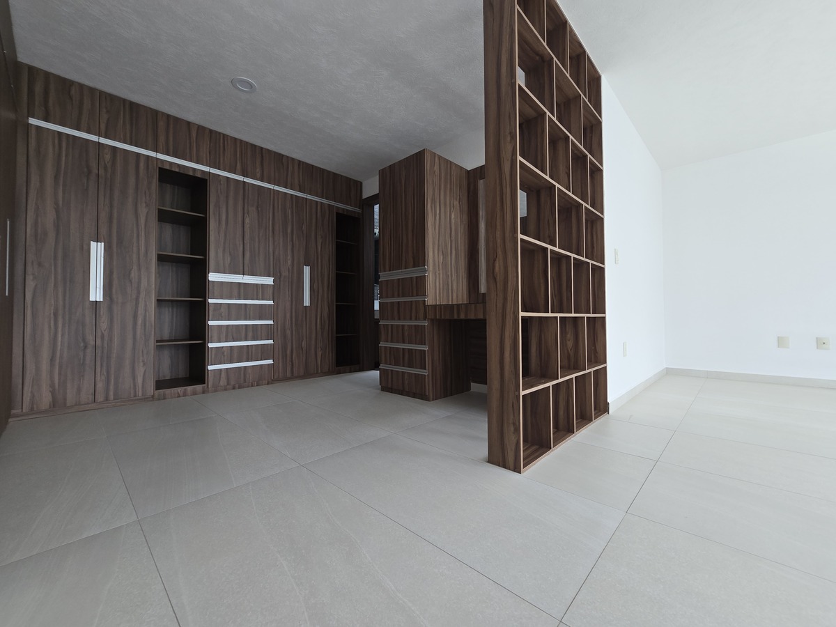 Cuatro recámaras en total, cada una con baño completo y clóset, y la principal con vestidor, balcón y doble lavabo.