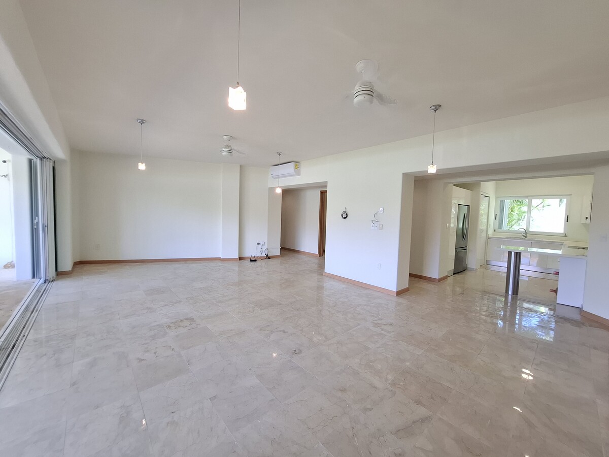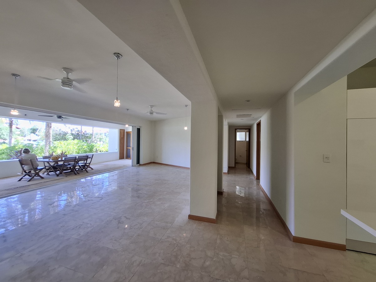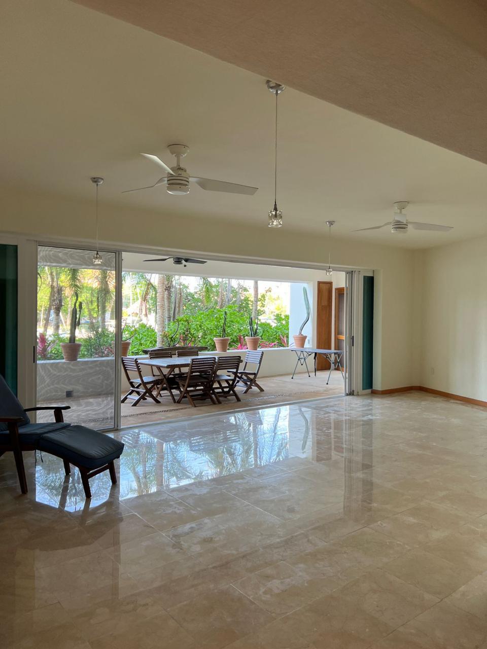 The apartment is located on the ground floor of the attractive Chac Hal Al condominium. This 173 m2 property has everything you need. It has 2 bedrooms each with its own bathroom and private balcony. Large kitchen with window to the garden, a half bathroom for visitors, a spacious social area for the living room and dining room with large sliding door windows that go from ceiling to floor that lead to the beautiful terrace with views of the marina and boats. The property has A/C and ceiling fans.