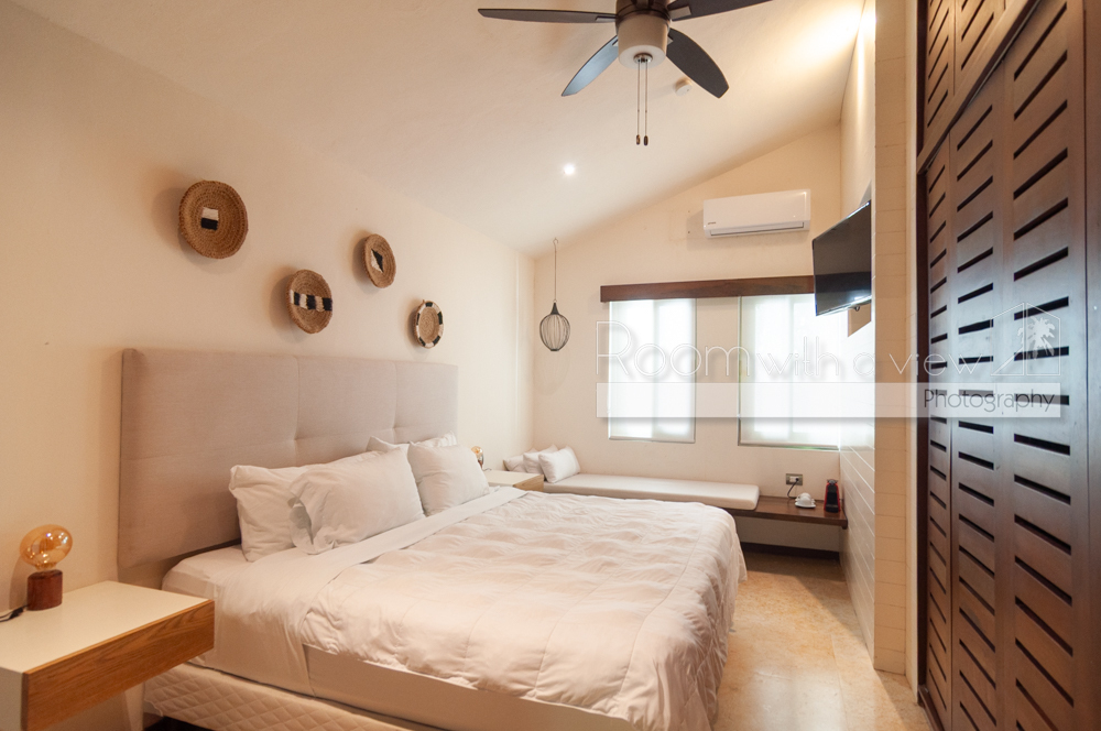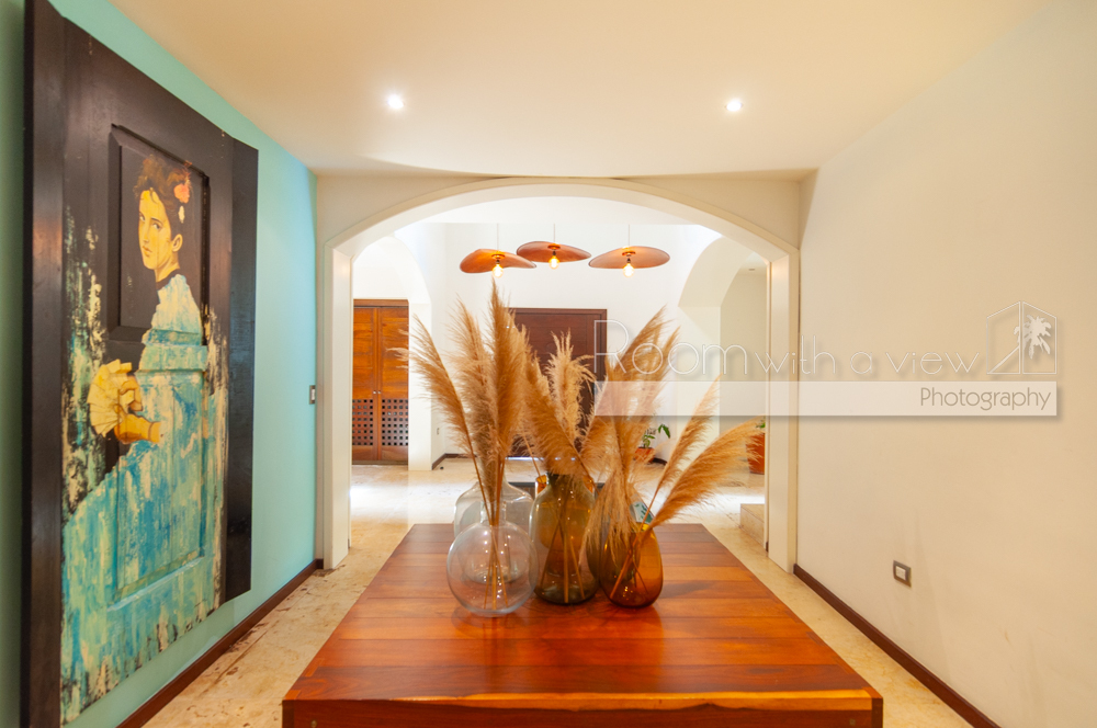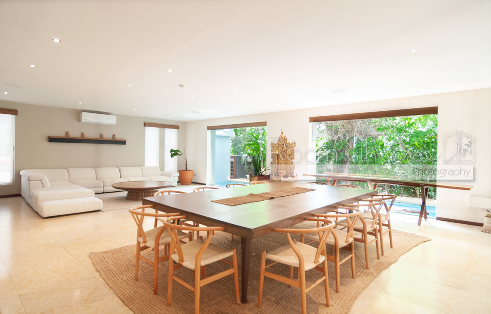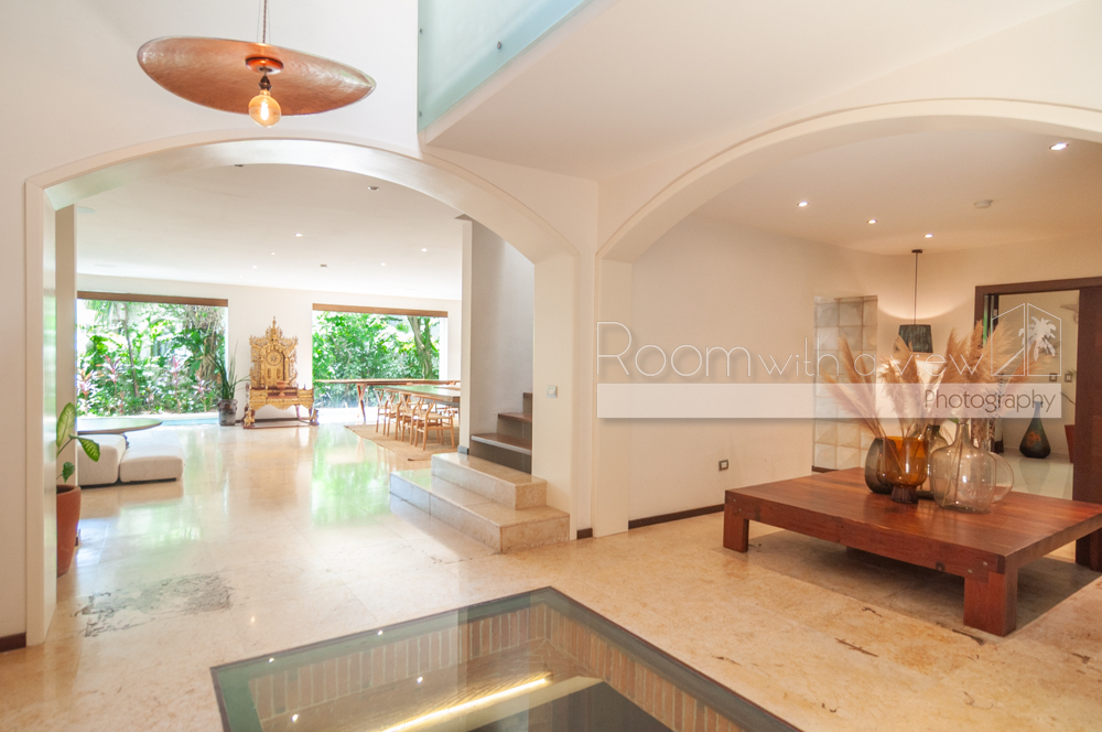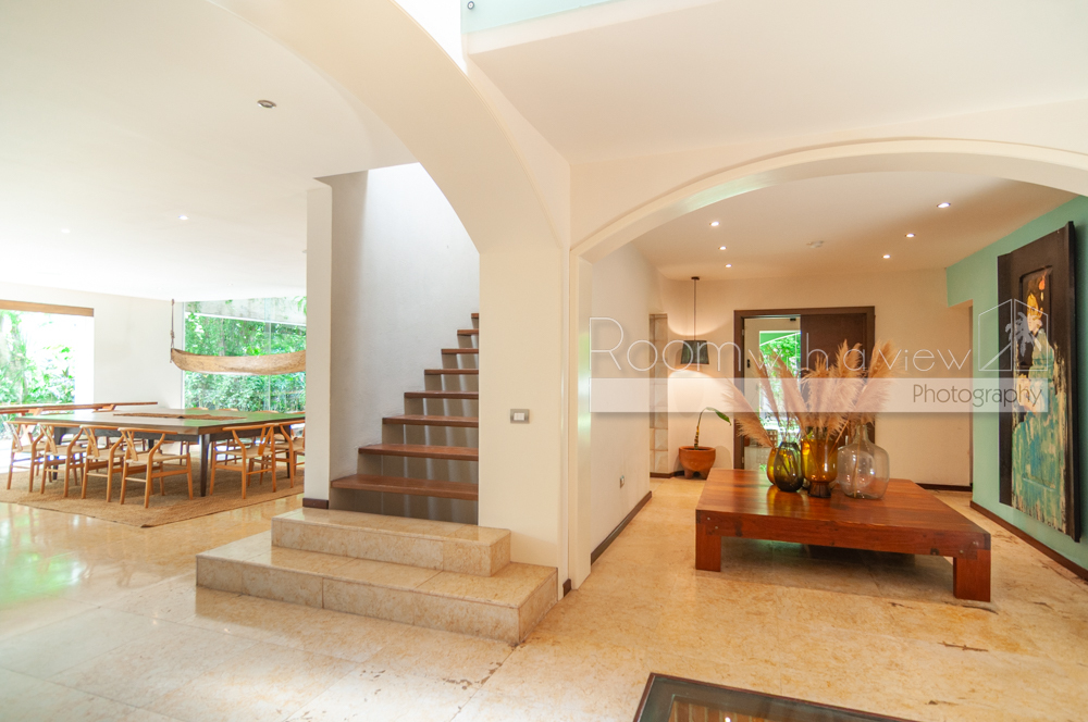 Contact our agents for more information.El elegante diseño de Villa Toh es amplio y lujoso, con mucha luz, techos en bóveda y muebles de buen gusto. Al entrar en la casa, en el vestíbulo destaca un panel de cristal en el piso, que revela el ladrillo rústico del nivel inferior de la casa. Las entradas en forma de arco conducen a los diferentes espacios en la planta baja. Las ventanas se extienden hasta el piso brindando asombrosas vistas, mucha luz natural e integrando los espacios exteriores con los interiores.