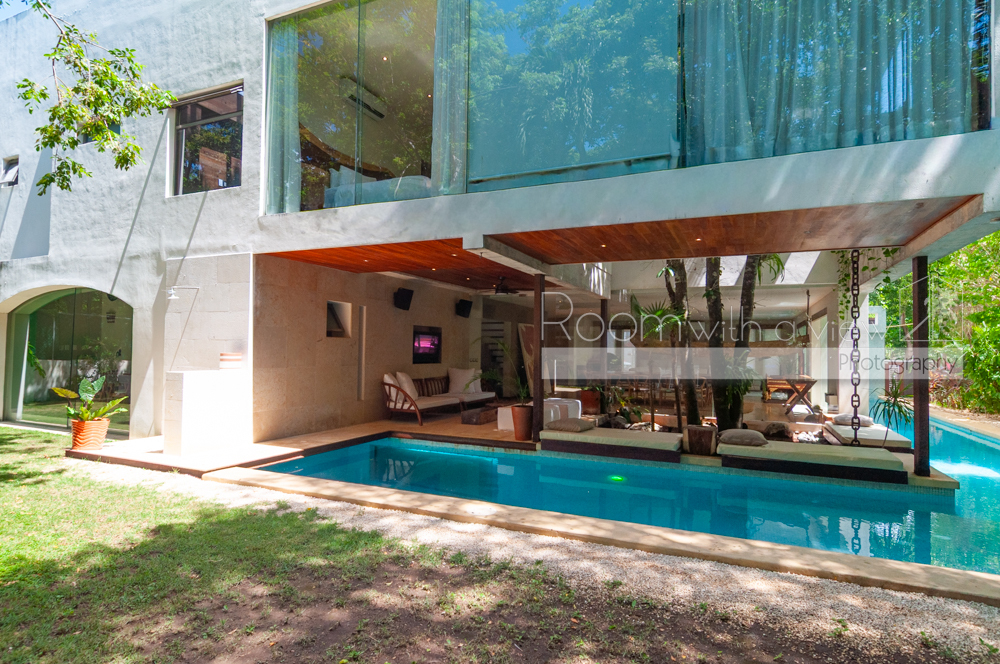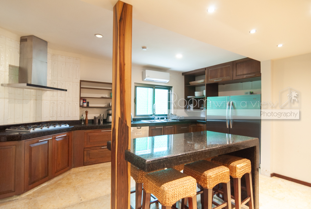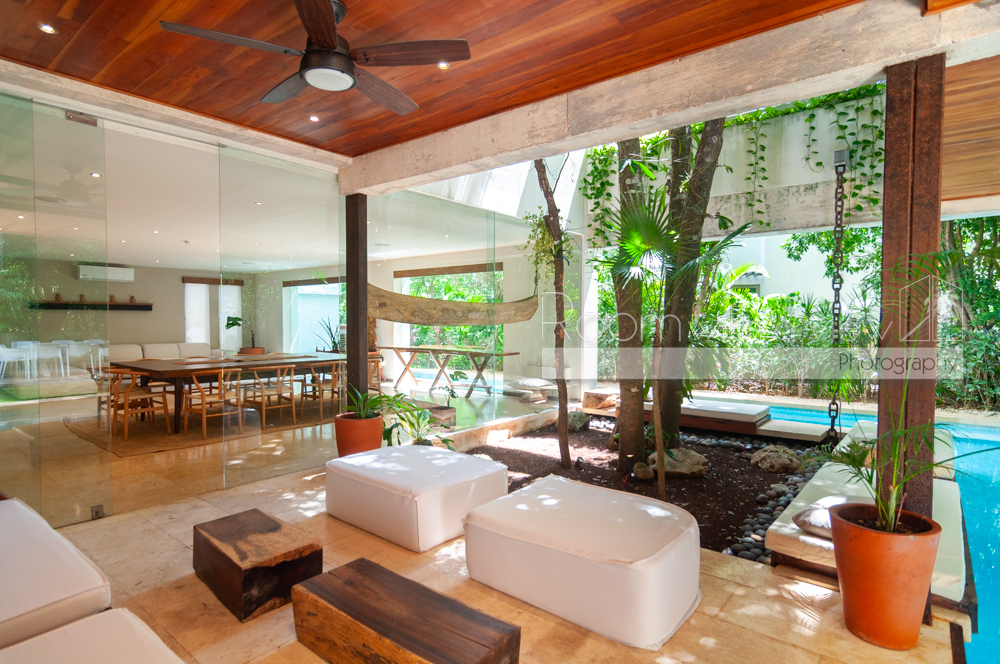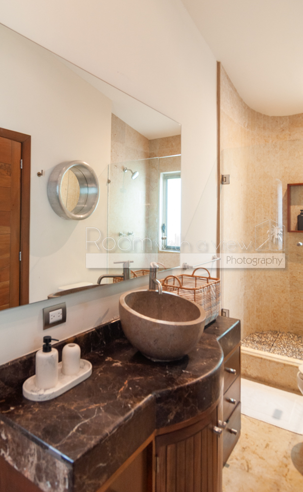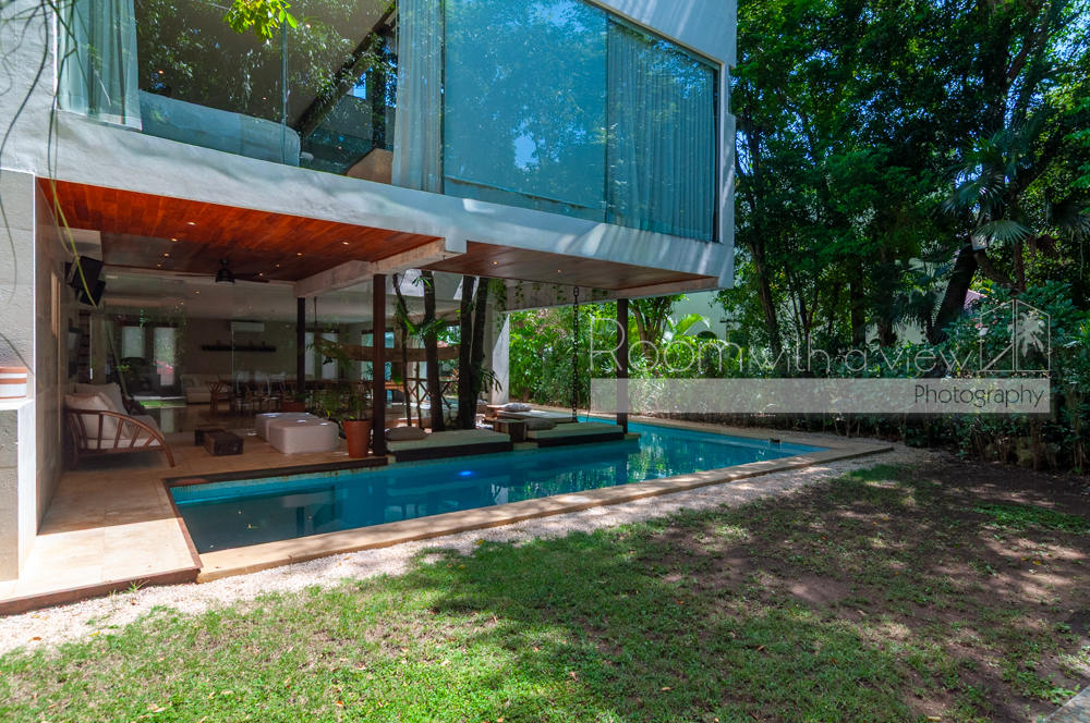 Contact our agents for more information.El elegante diseño de Villa Toh es amplio y lujoso, con mucha luz, techos en bóveda y muebles de buen gusto. Al entrar en la casa, en el vestíbulo destaca un panel de cristal en el piso, que revela el ladrillo rústico del nivel inferior de la casa. Las entradas en forma de arco conducen a los diferentes espacios en la planta baja. Las ventanas se extienden hasta el piso brindando asombrosas vistas, mucha luz natural e integrando los espacios exteriores con los interiores.