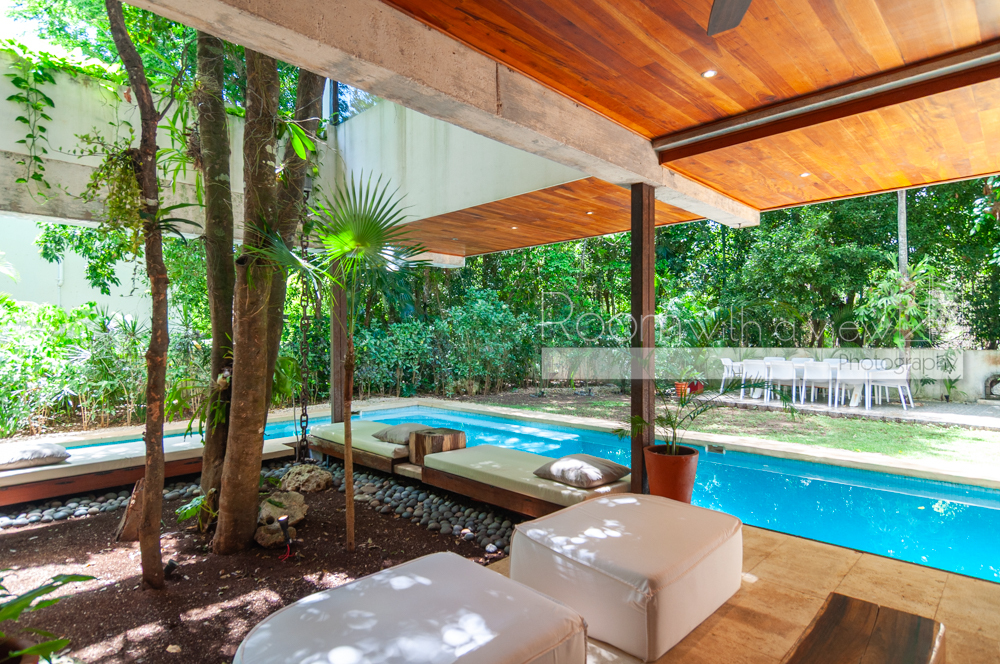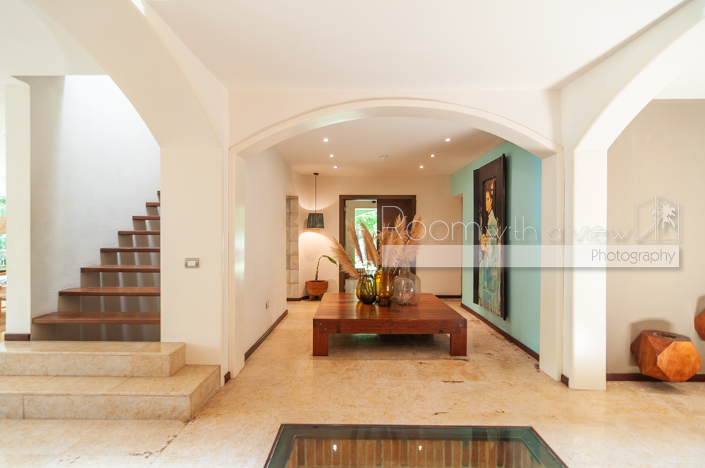 The location of this residence on the outskirts of Playa del Carmen is ideal for golfing, shopping and enjoying all the attractions in the area. There are five covered parking spaces.