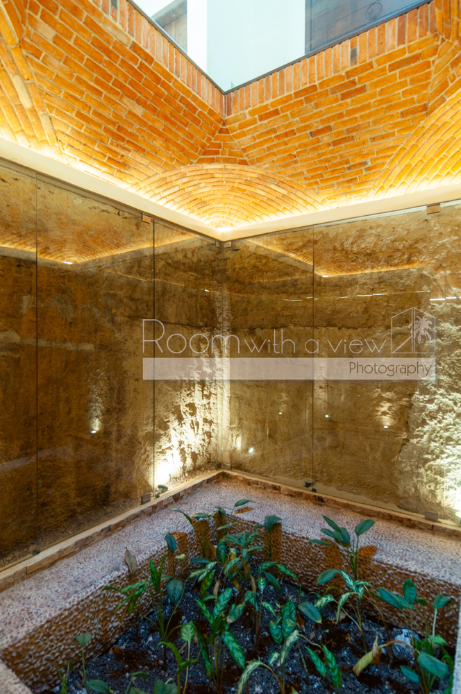 Villa Toh's elegant design is spacious and luxurious, with lots of light, vaulted ceilings and tasteful furniture. As you enter the house, a glass panel stands out in the lobby on the floor, which reveals the rustic brickwork of the lower level of the house. The arched entrances lead to the different spaces on the ground floor. The windows extend to the floor providing amazing views, lots of natural light and integrating the outdoor spaces with the interiors.