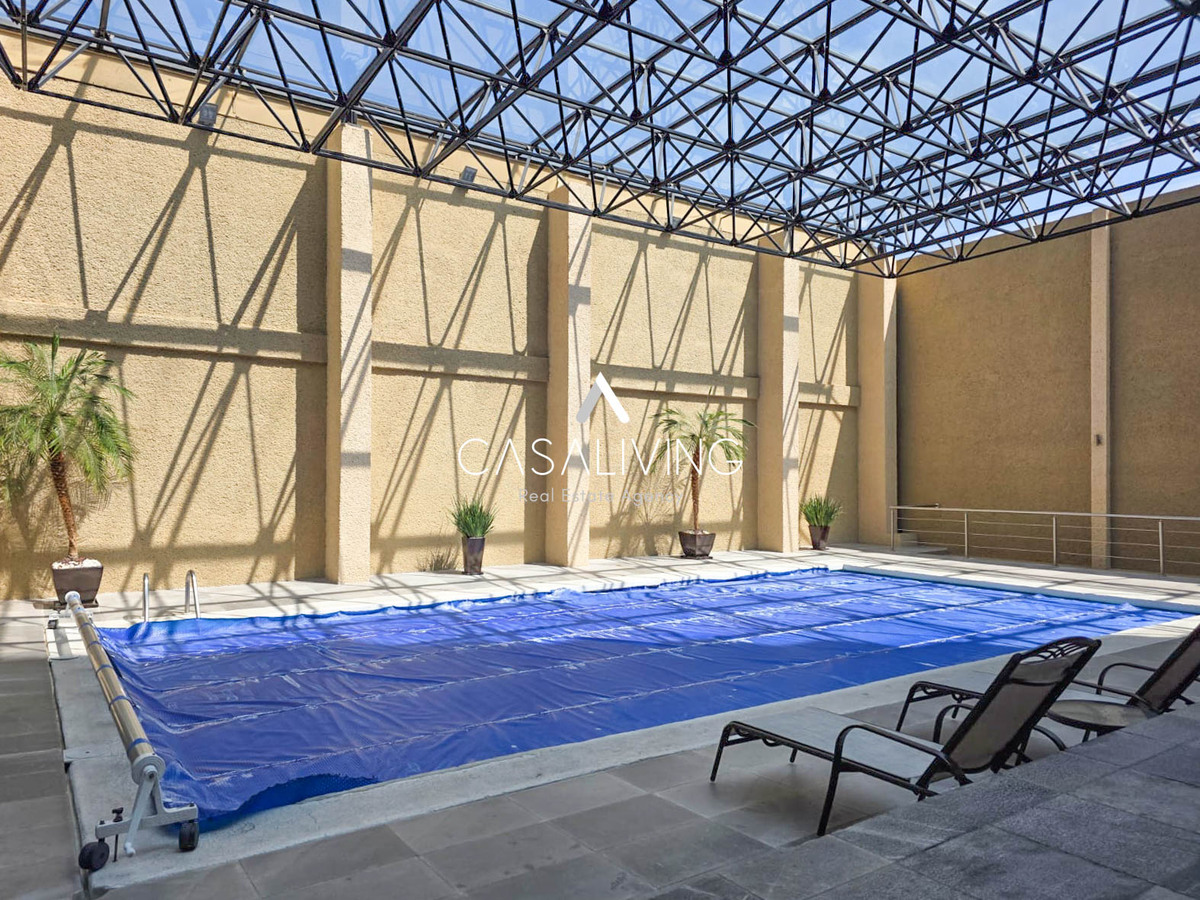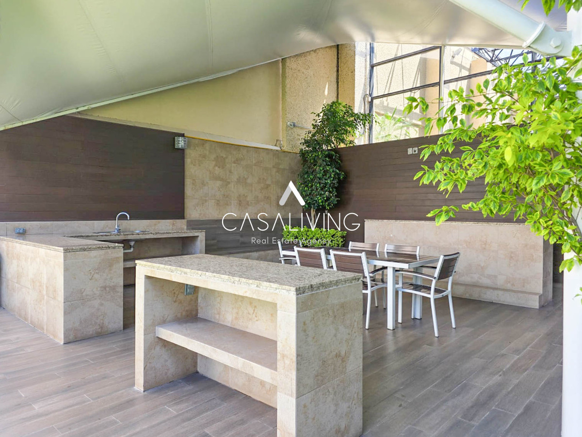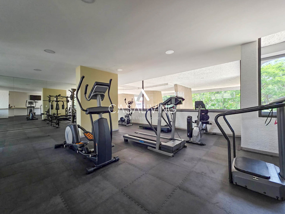 The building has a pool, gym, large garden, event hall, and a social area. Covered terrace with a grill next to the garden. Parking for 2 cars and 24/7 security.