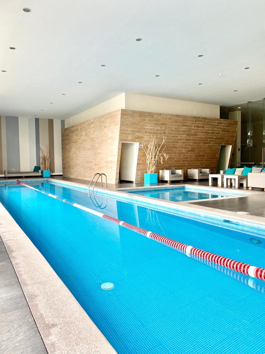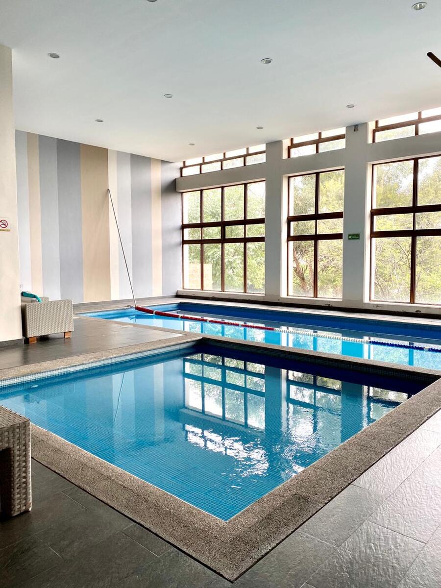 El condominio cuenta con áreas comunes: juegos infantiles, gran gimnasio muy bien equipado, alberca techada, alberca para niños, jacuzzi, vestidores y sauna, ludoteca, salón de eventos, area para mascotas, salón de juegos de mesa, terrazas cubiertas con wifi, estacionamientos de visitas, y estricta seguridad 24x7. Administración externa.