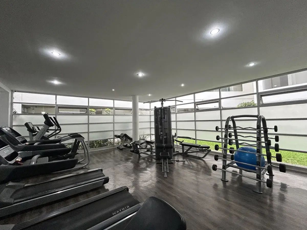 El edificio cuenta con amenidades como Gimnasio, terraza, salón de eventos y áreas verdes. Cuenta con elevador y vigilancia 24h.