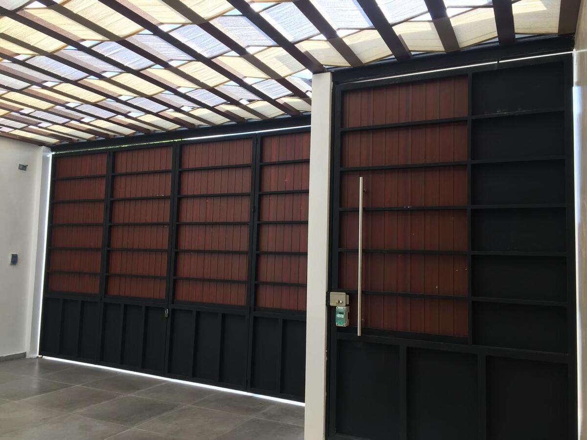 Planta baja: cochera techada con portón eléctrico para 2 autos, medio baño de visitas, sala-comedor, cocina integral equipada, área de lavado techada y terraza.