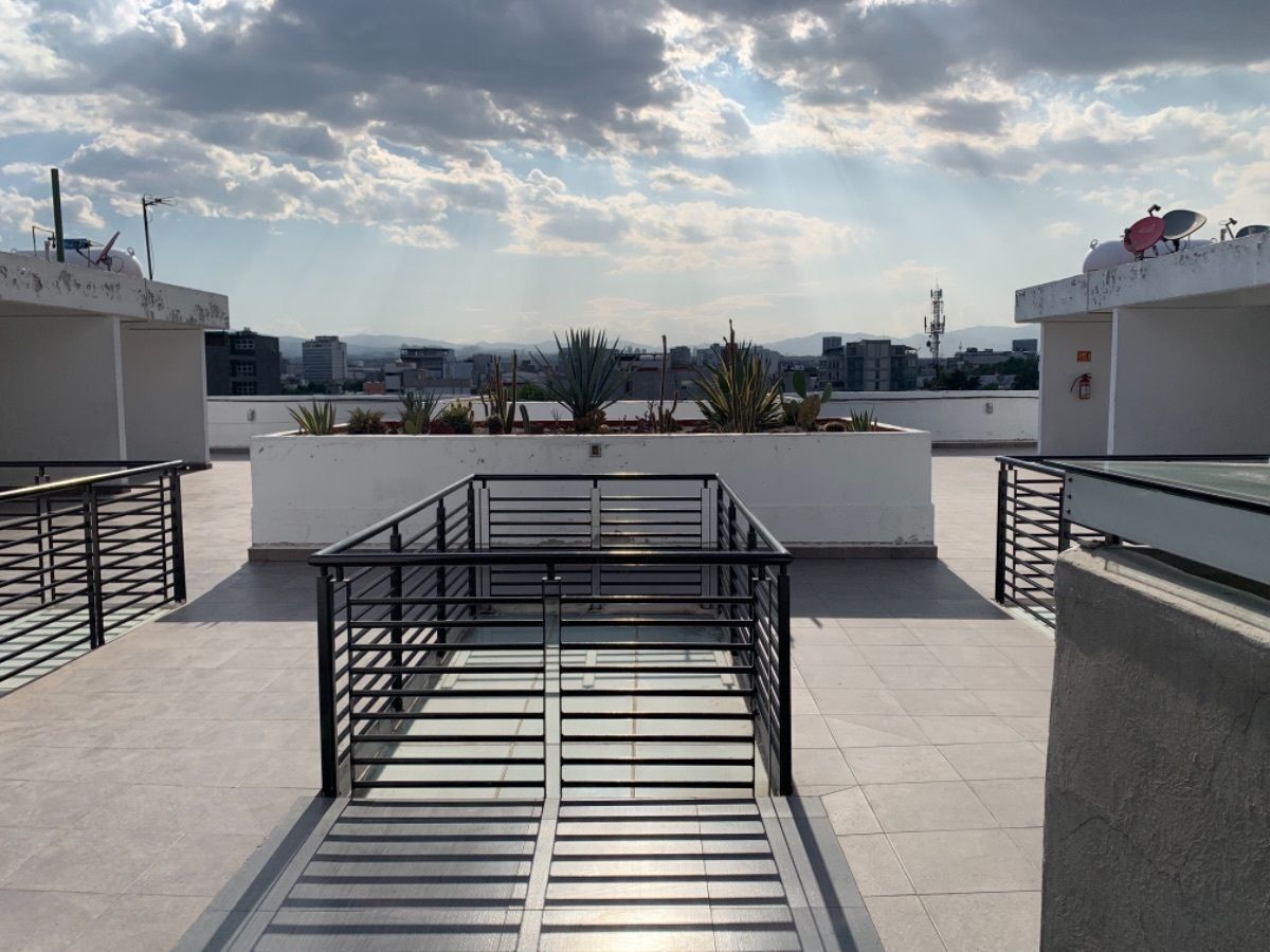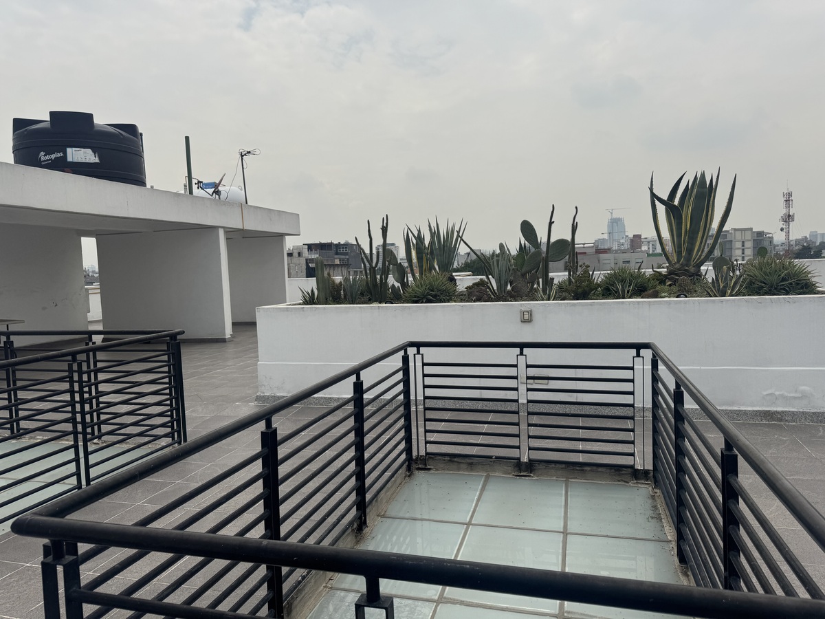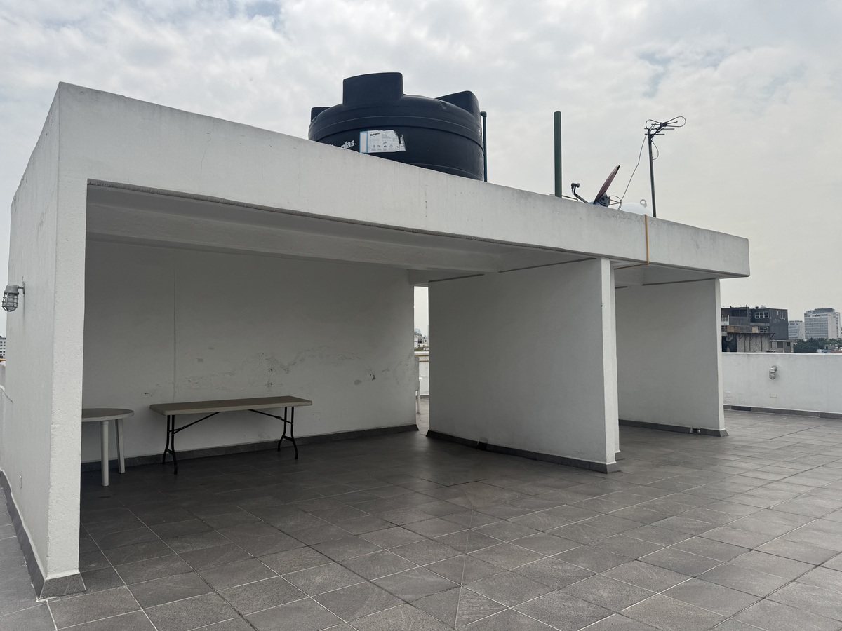 For rent at $30,000.00 pesos. Ideal for investment.Amueblado y equipado departamento con balcón en sala comedor , consta de 2 recámaras con clóset , 2 baños completos, sala comedor , cocina abierta y pequeña área de lavado con fregadero. El edificio tiene Roof Garden común y vigilancia 24 horas. Tiene también dos estacionamientos y una bodega.