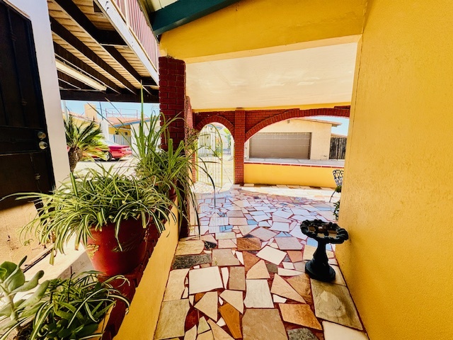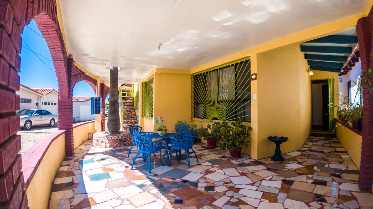 La casa incluye un amplio patio con coloridos azulejos, pila y espacio perfecto para reuniones. Dispone de cochera para un auto y espacio adicional para otro vehículo. Ubicada a solo una isla del mar, ofrece vistas espectaculares y un estilo de vida costero único.