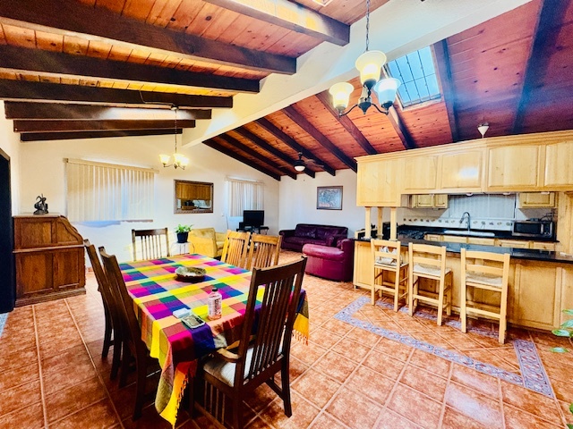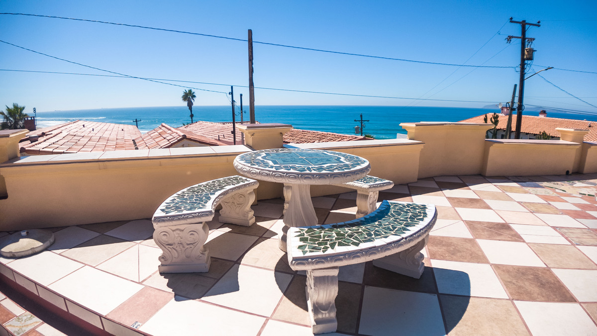 The home features a generous patio with colorful tiles, a pila, and space for entertaining. There is parking for one car in the garage plus an additional space for another vehicle. Just one isle from the ocean, the location provides breathtaking views and the perfect coastal lifestyle.