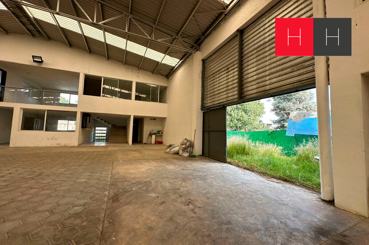 With 6 offices with a breakfast area, a warehouse with a covered area, and behind it, there is an uncovered area with grass where cars can be parked.