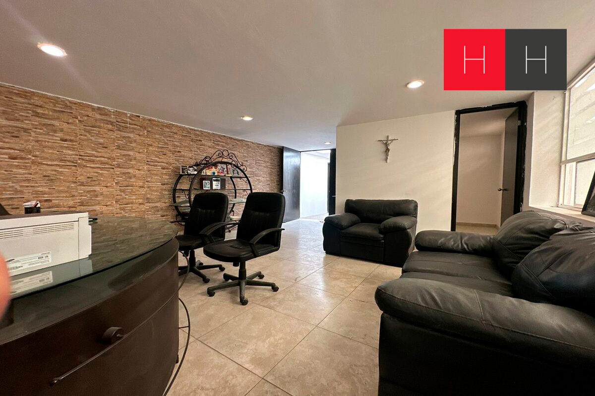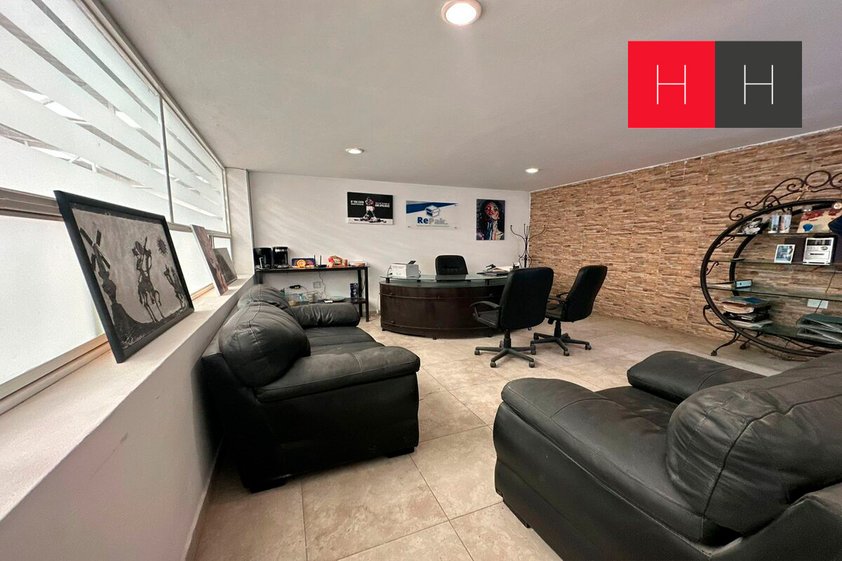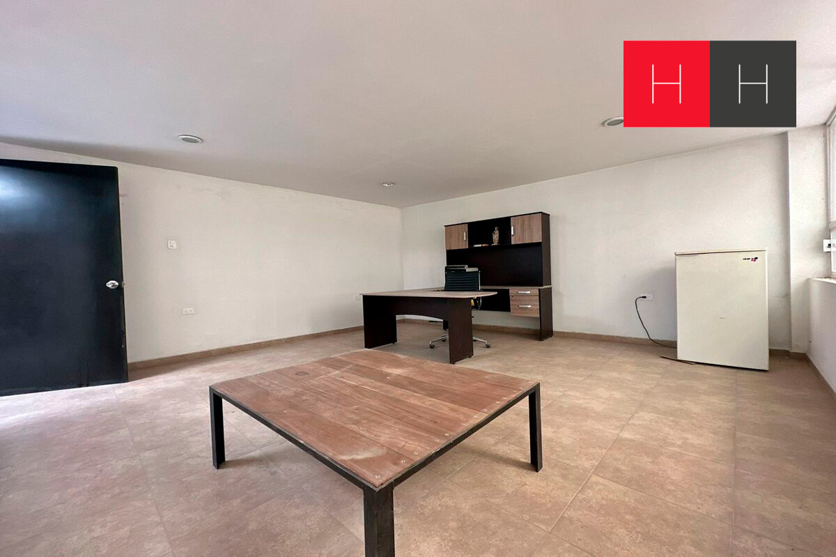 Con 6 oficinas con desayunador un almacén con area techada y atrás cuenta con area sin techar tiene pasto en ella pueden dejar automóviles.