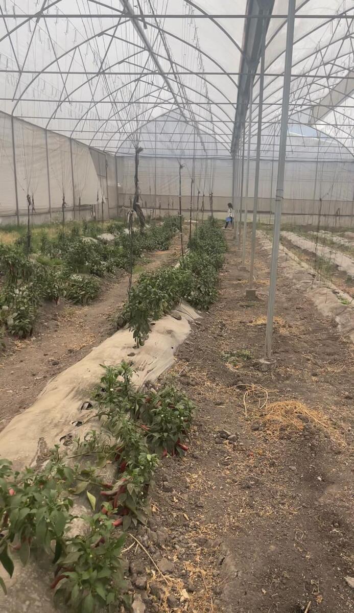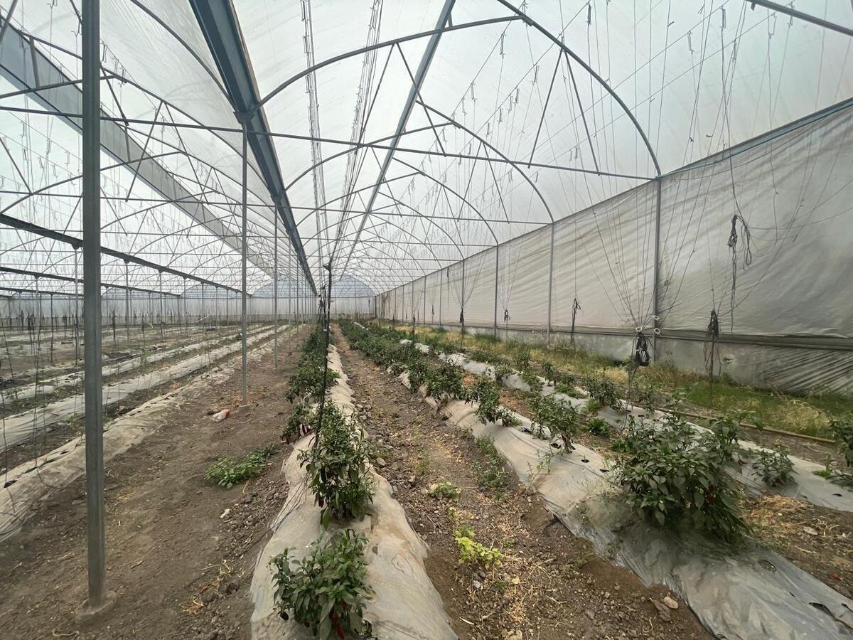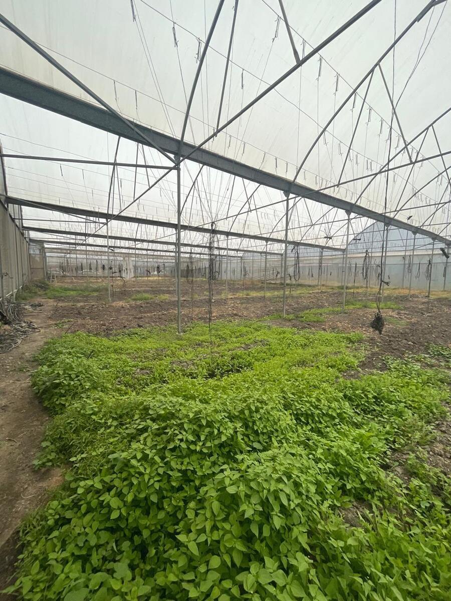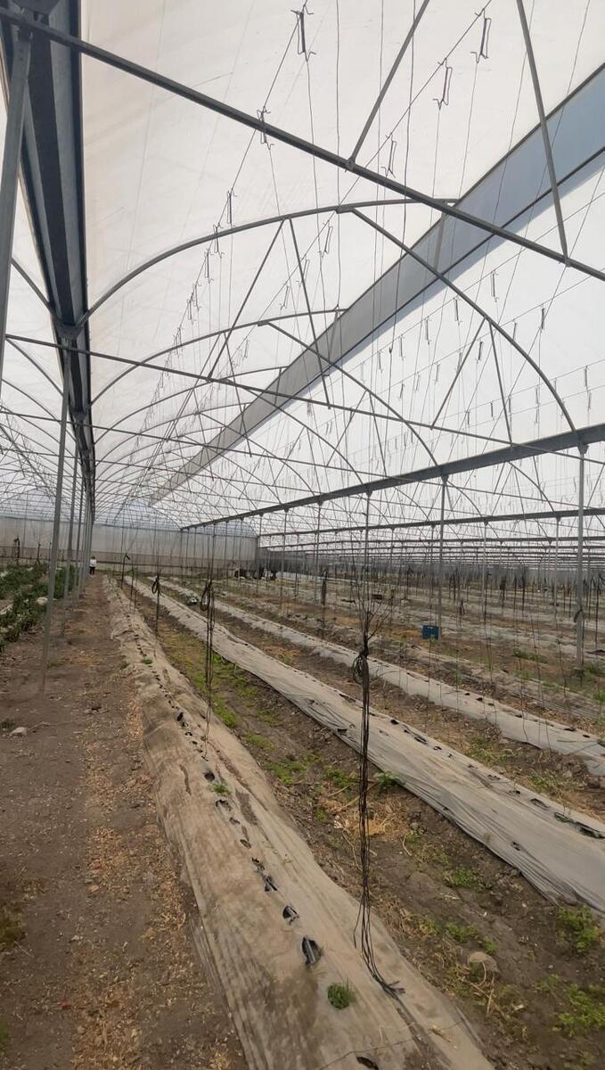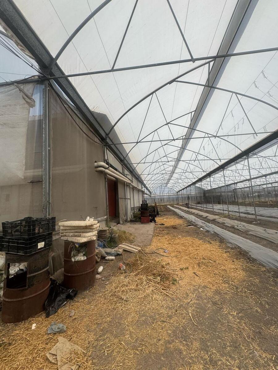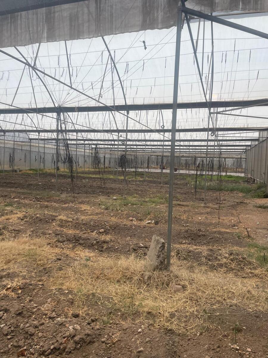 It was a greenhouse, so the entire land has a metal structure that supports a plastic roof. And walls also made of plastic, as an irrigation system.