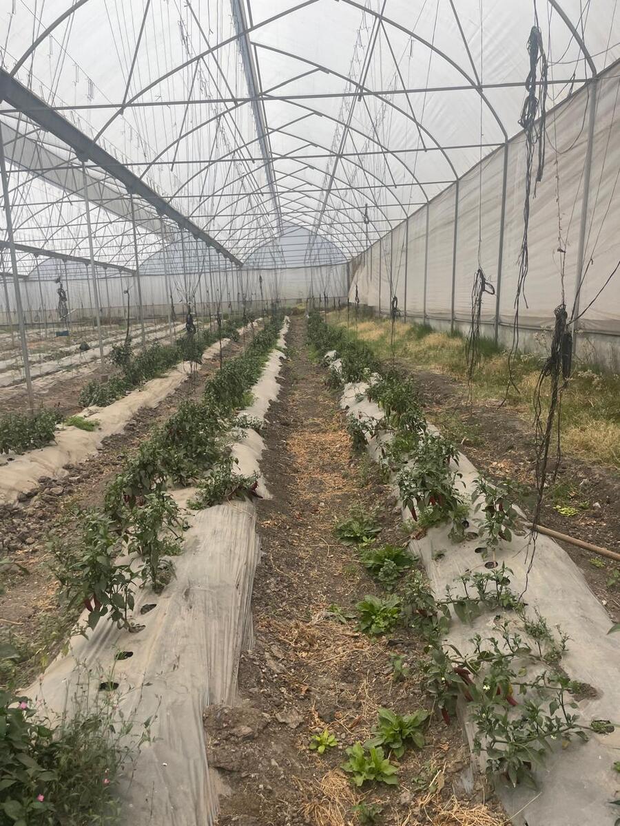 Fue invernadero por lo que todo el terreno tiene una estructura metálica que soporta un techo de plástico. Y paredes también de plástico, como sistema de riego