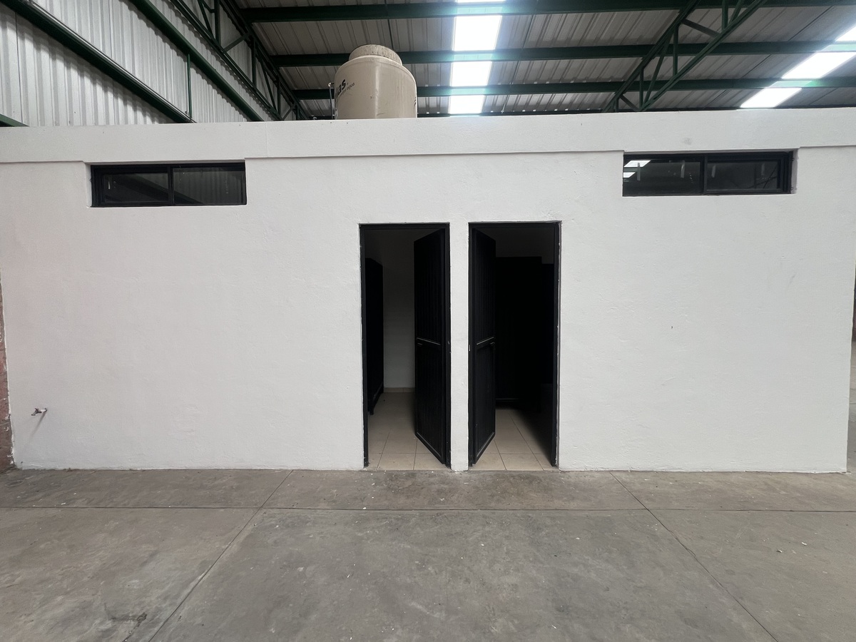 Oficinas, baños, rampa de acceso de zona de carga y descarga, área de estacionamiento con piso de adocreto