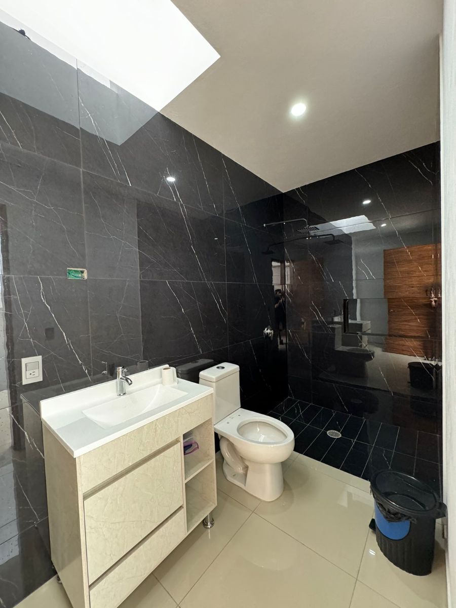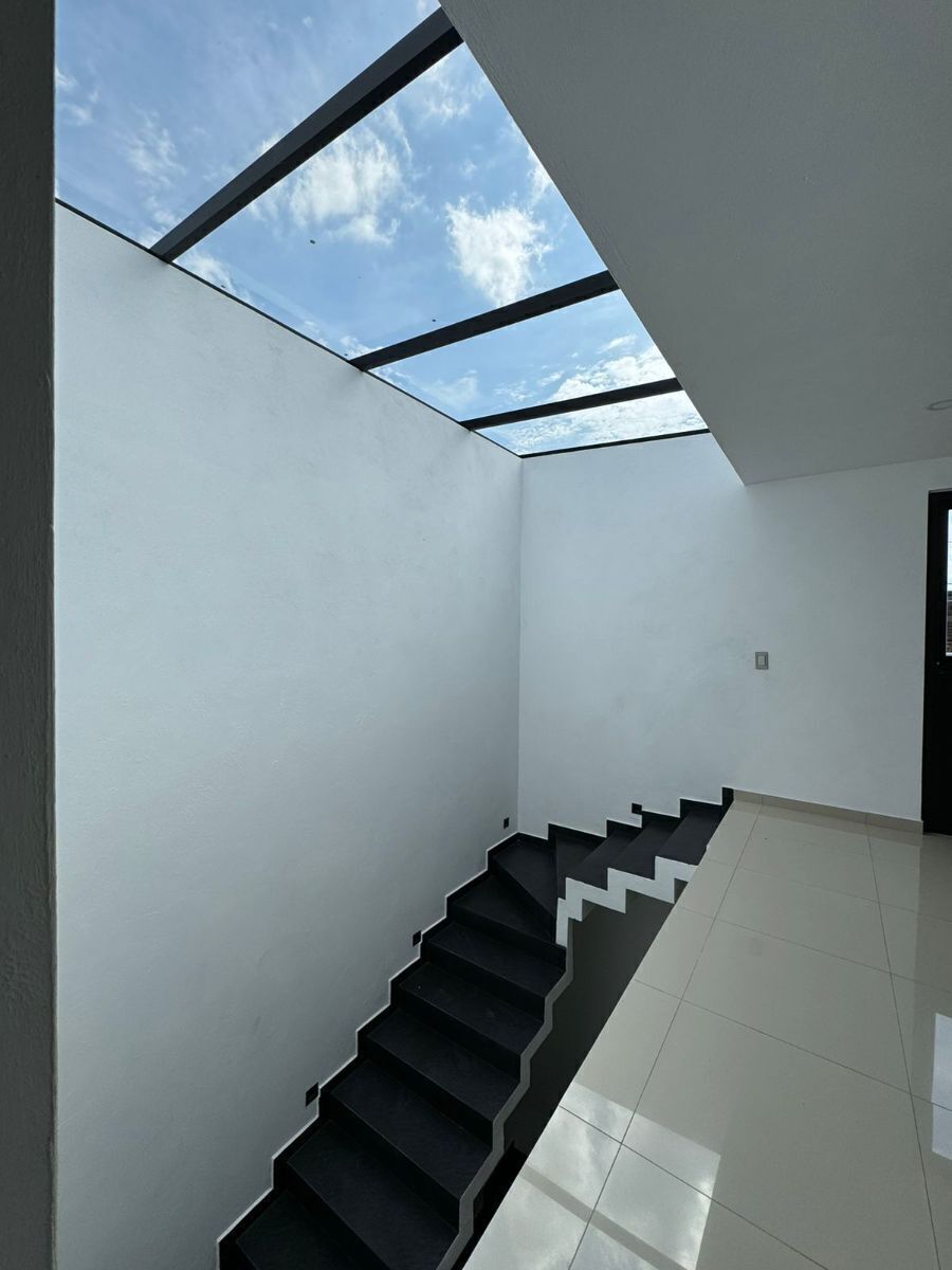 The house has a cistern, water tank, carpentry in parota wood, roof garden with pergola, tempered glass on stairs and balconies.Planta baja: Cochera para 2 autos con portón eléctrico, estudio, baño completo, sala, comedor, cocina, patio.