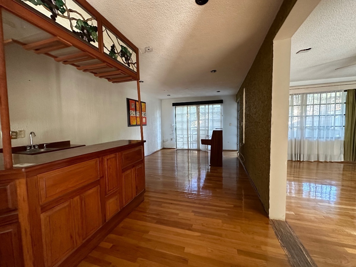 Sala,comedor,Área de bar,cocina,cuarto de servicio,cuarto de lavandería,patio de servicio,amplio patio con asador,oficina,medio baño,cochera para dos autos.