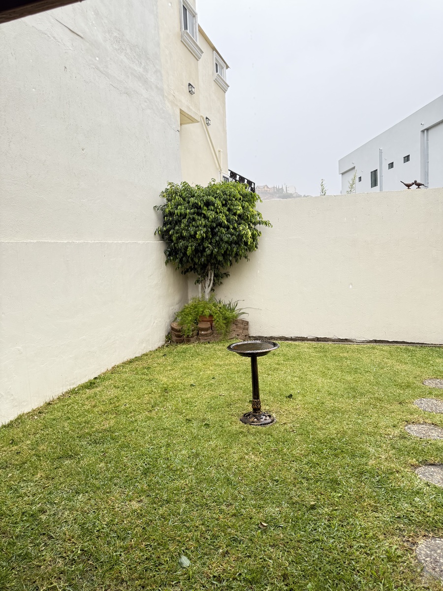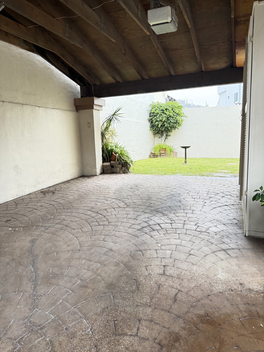 ๐ฟ Patio posterior techado, con puerta corrediza hacia el jardรญn.