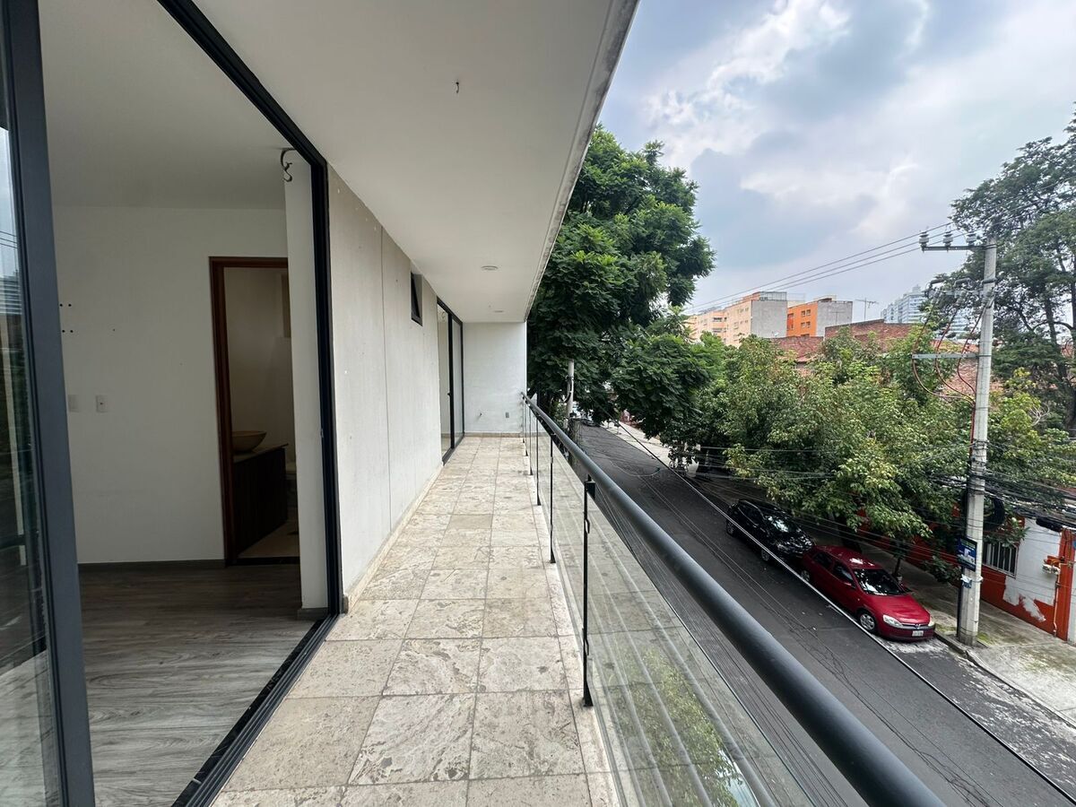 Balcón de gran tamaño con acceso desde la sala hasta la recámara principal