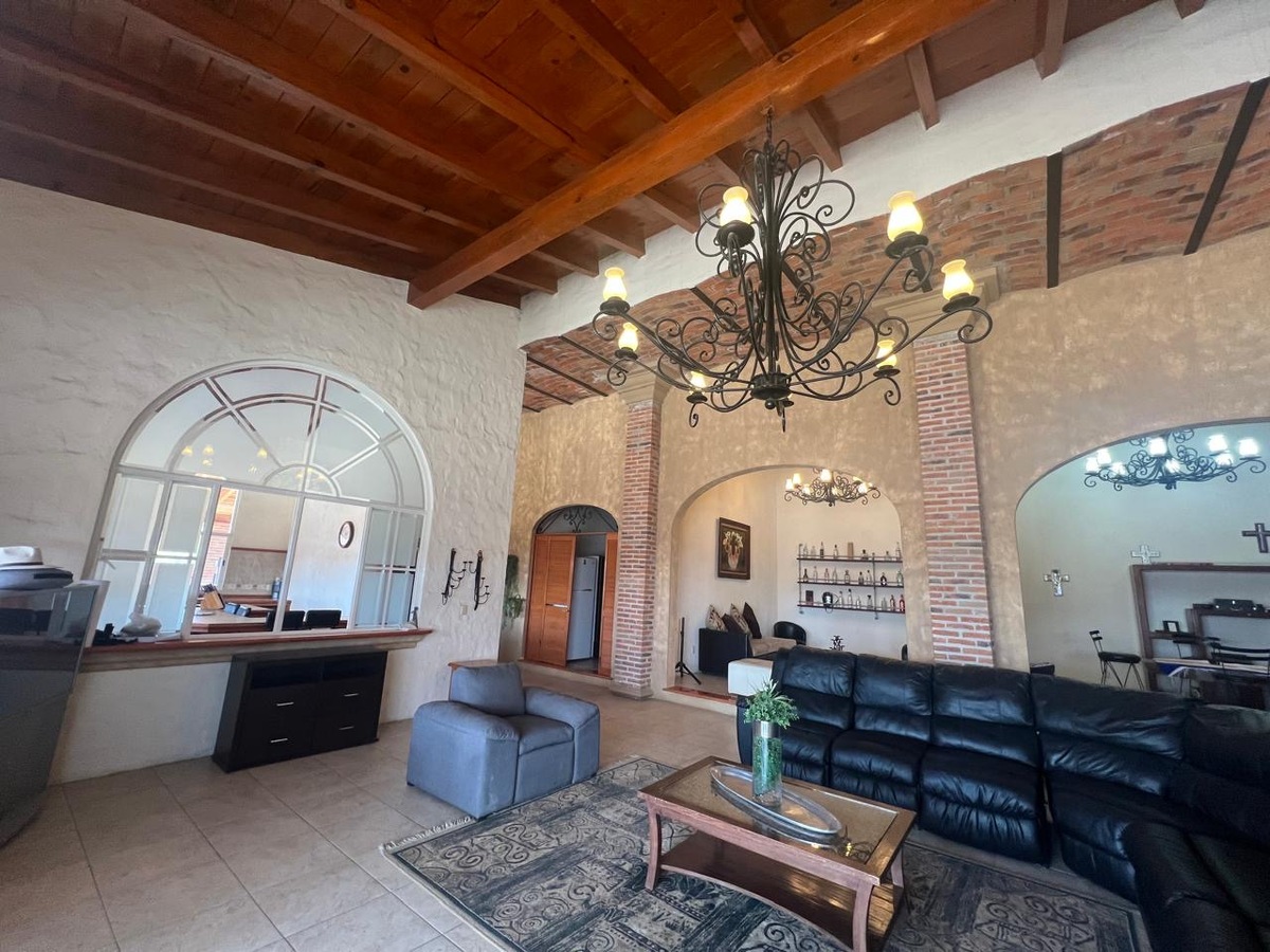 Sala, comedor, cocina integral con ante comedor, cuarto de estar, 3 recamaras, la principal con sala de estar, baño con tina y doble lavamanos, las otras dos recámaras con baño, terraza y jardín con alberca