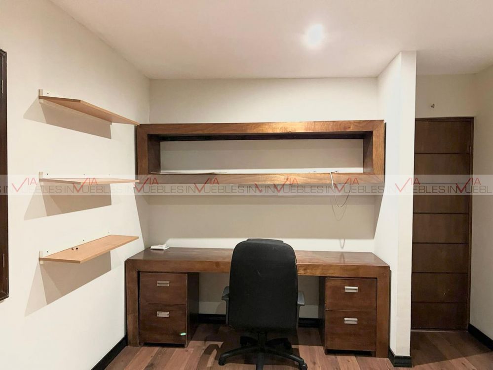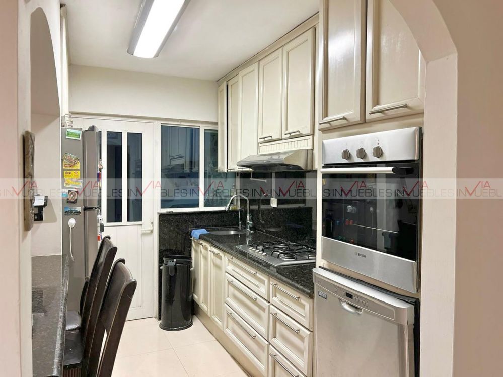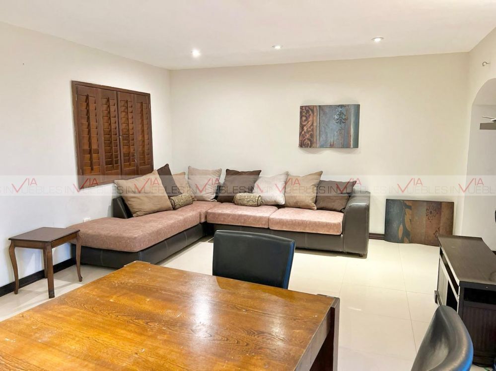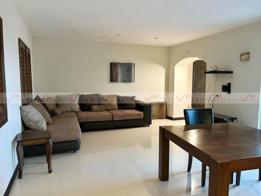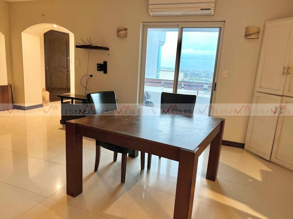 Departamento en renta en excelente ubicación al sur de la ciudad con fáciles accesos a avenidades principales. Cuenta con 3 recámaras, la principal con baño completo y closet, las secundarias con closet de pared y comparten baño, cocina equipada, área de sala comedor, lavandería y cuarto de servicio. Cuenta con un área exclusiva para uso del departamento ya que el acceso es por dentro del mismo a un área de terraza de 120m2 con asador donde se podrá disfrutar de hermosas vistas tanto al cerro de la silla como a la ciudad. Id Gvia: 110372