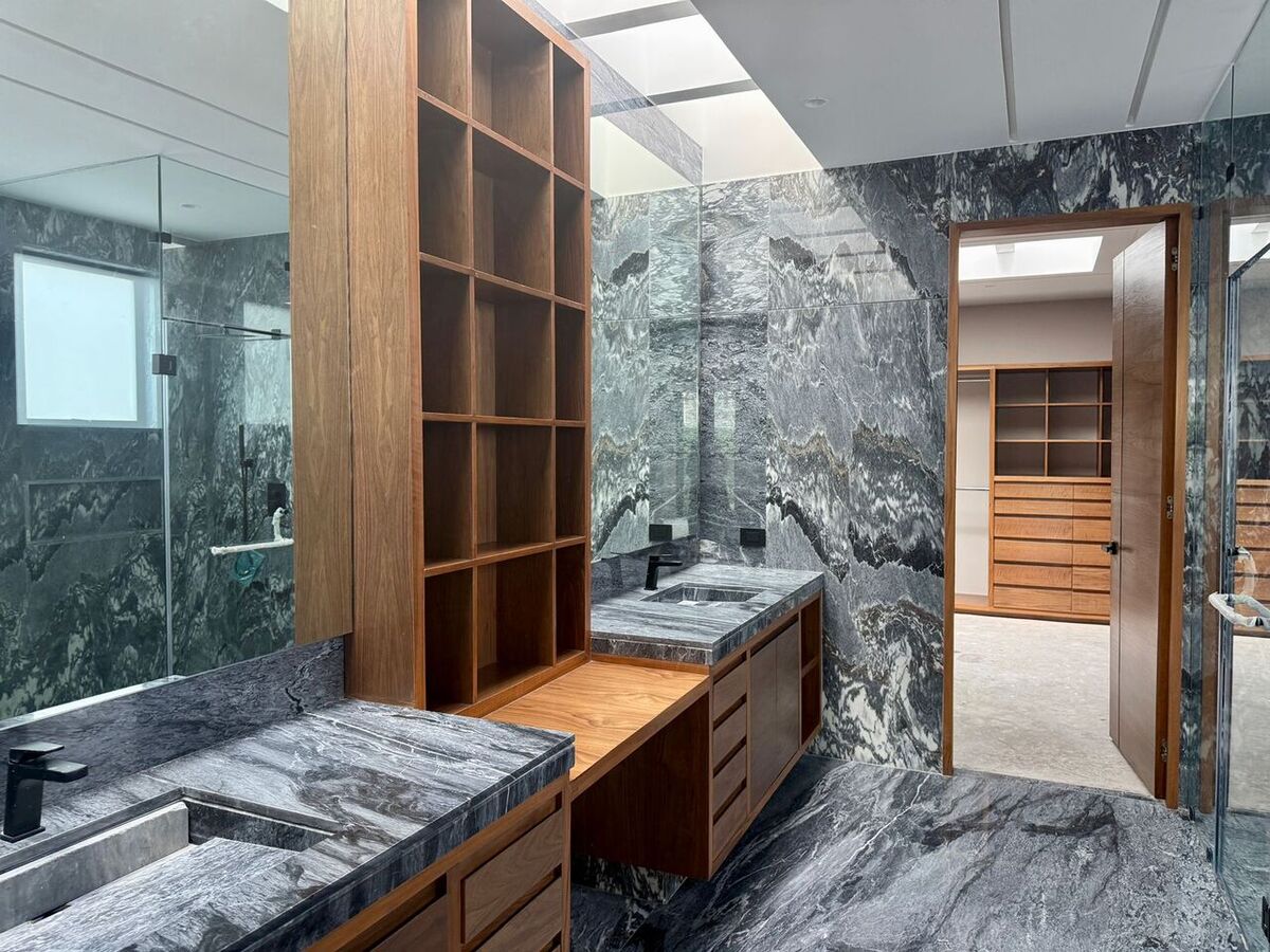 House for sale in Bosques de las Lomas. Land of 623 m² and construction of 1,100 m². It has four bedrooms, each with a dressing room and bathroom, equipped with tempered glass partitions and marble sinks. The bedrooms have balconies and porcelain tile floors.