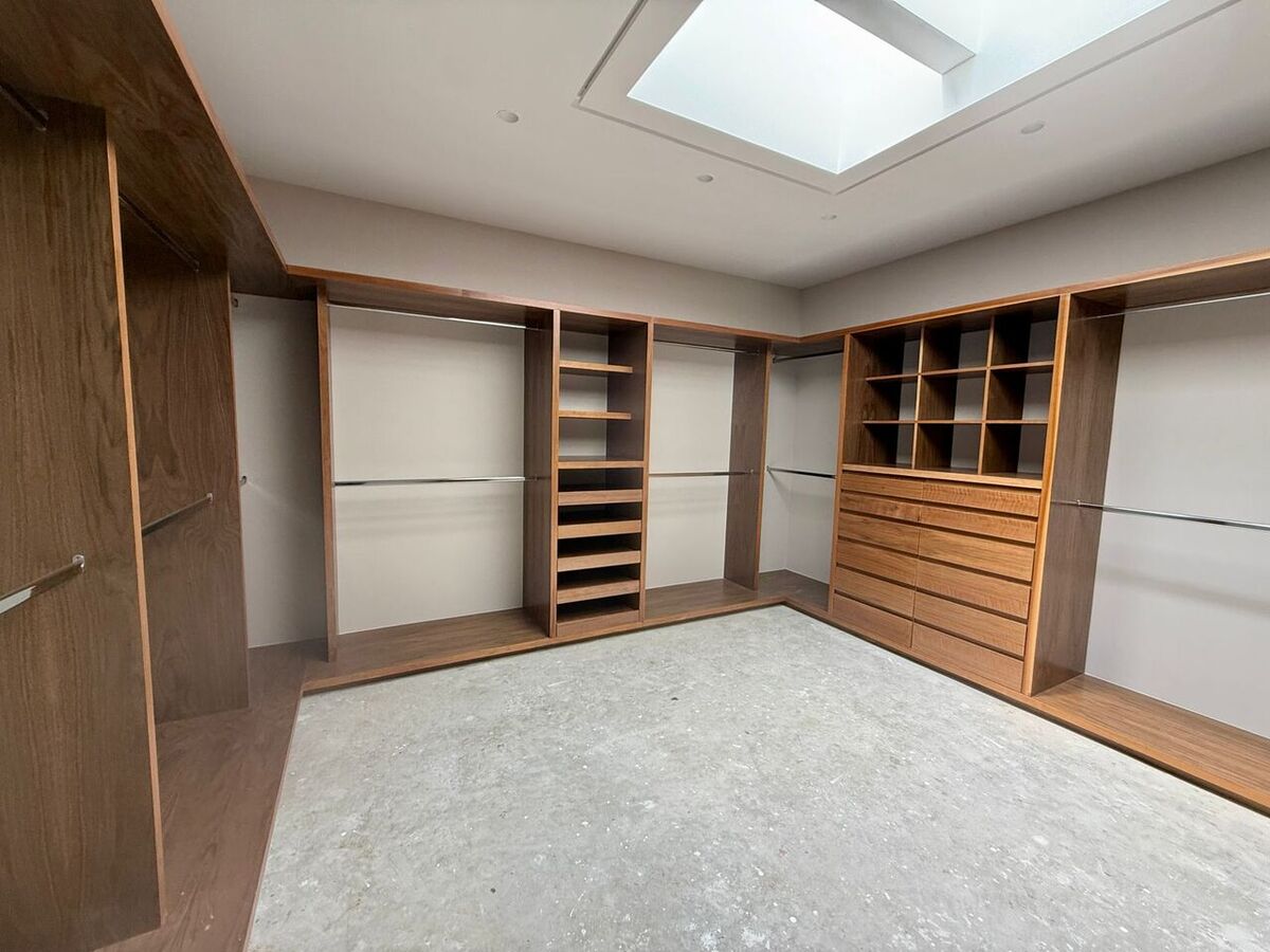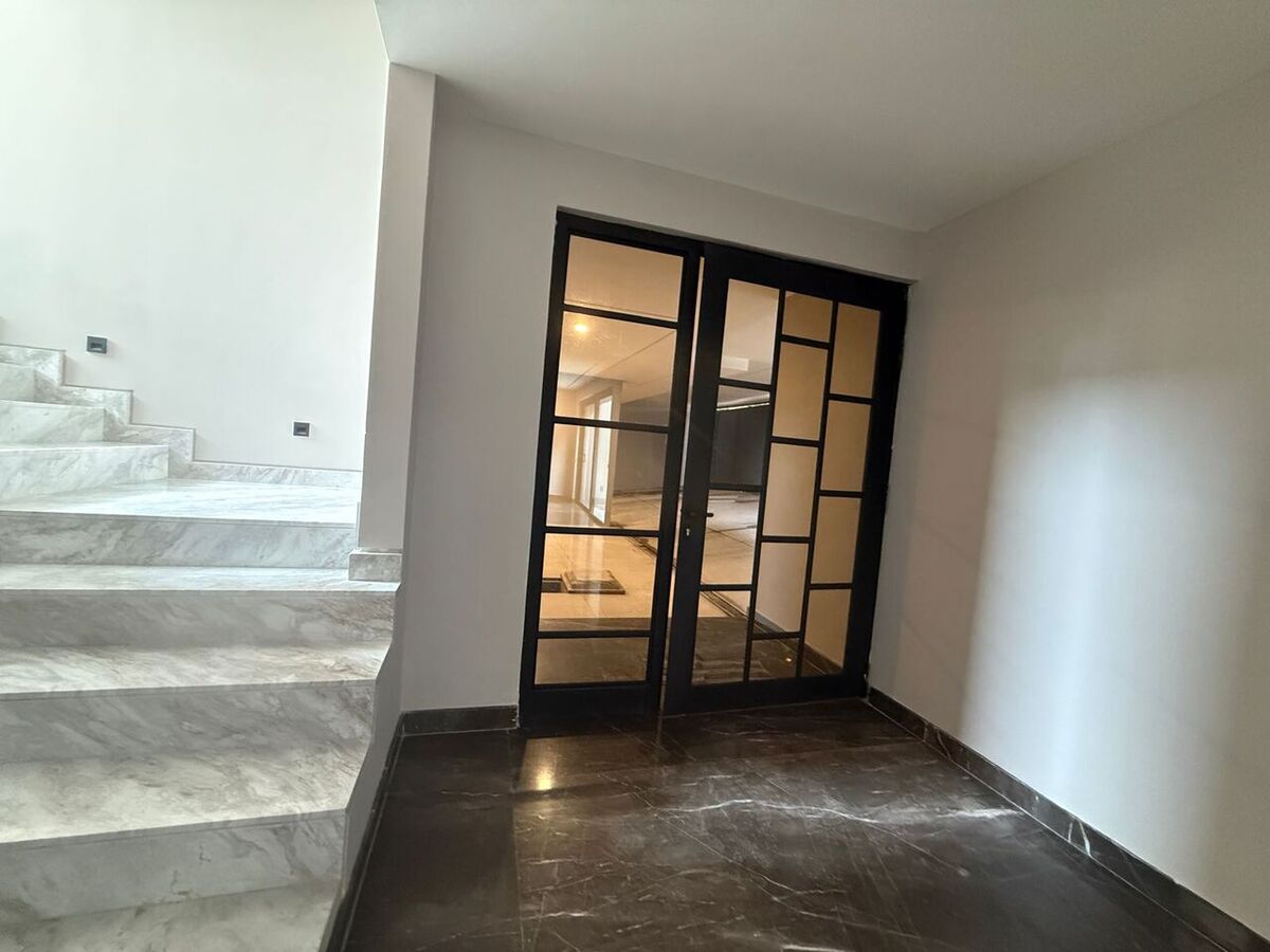 The kitchen is integral, with a granite bar and walnut cabinetry. The social area includes a living room, dining room, and breakfast nook with access to the 220 m² garden, as well as a TV room, study, and event hall with a bathroom and storage room.