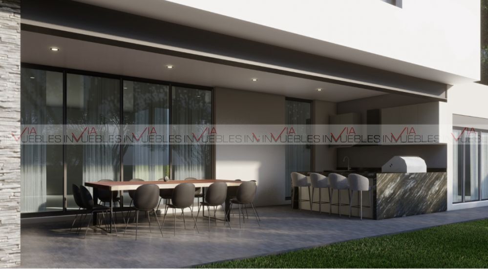 Three-storey house located on the corner in front of the park, club house and jalapa, it has three bedrooms each with its dressing room and bathroom, family room on the second floor, large living room and kitchen area, family room on the first floor, terrace with grill area and garden. Service room, laundry and garage for three cars. VAT ID: 109869Excelente casa ubicada en Carretera Nacional en Santiago. En Fraccionamiento con vigilancia 24/7 con casa club, asadores, alberca juegos infantiles, áreas verdes y otras amenidades.