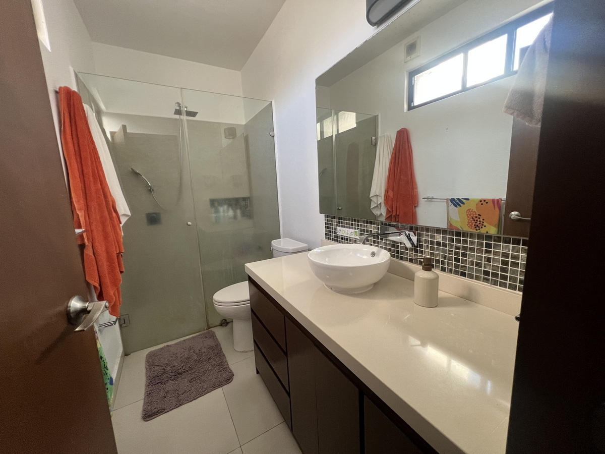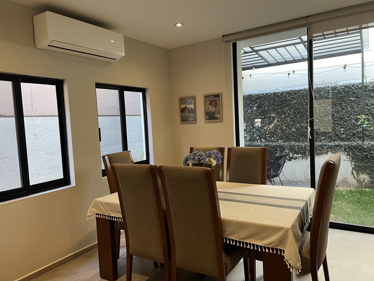 ON THE UPPER FLOOR IT HAS A TV ROOM, 3 SPACIOUS BEDROOMS WITH LAMINATE FLOORING, PREPARATION FOR AIR CONDITIONING, DOUBLE GLASS IN 2 BEDROOMS THAT HELPS TO REDUCE OUTSIDE NOISE PROVIDING GREATER COMFORT, SHEER AND BLACKOUT BLINDS IN BEDROOMS AND LIVING-DINING ROOM. THE MASTER BEDROOM HAS A BATHROOM AND WALK-IN CLOSET, THE OTHER 2 SHARE A BATHROOM, LINEN CLOSET, 2 PARKING SPACES WITH ELECTRIC GATE. THE HOUSE HAS A HYDRO-PNEUMATIC SYSTEM, SOLAR HEATER AND SOLAR PANELS, INSTANT WATER HEATER, 2 PARKING SPACES WITH ELECTRIC GATE. IT ONLY HAS ONE SIDE NEIGHBOR AS ON THE OTHER SIDE IT BORDERS THE AMATE GATED COMMUNITY. RENT INCLUDES MAINTENANCE, NO STUDENTS OR PETS.HERMOSA CASA EN BOSQUES VALLARTA UBICADA EN CIRCUITO BOSQUES VALLARTA AL LADO DE LA CASETA DE VIGILANCIA DE UN COTO, CON FACIL ACCESO PARA ENTRAR Y SALIR DEL FRACCIONAMIENTO YA SEA HACIA AVE. VALLARTA O A SOLARES, CERCA DEL INSTITUTO DE CIENCIAS Y DE LOS COLEGIOS FRANCO MEXICANO, ONCE DE MEXICO Y LA UNIVERSIDAD PANAMERICANA, CONSTRUIDA EN 2 PLANTAS, EN PLANTA BAJA CUENTA CON MEDIO BAÑO DE VISITAS, AMPLIA SALA COMEDOR CON PREPARACION PARA AIRE ACONDICIONADO, COCINA INTEGRAL CON BARRA DE GRANITO Y LAVAVAJILLAS, AMPLIA DESPENSA, ESTUDIO CON BAÑO COMPLETO/CUARTO DE SERVICIO CON BAÑO, TERRAZA Y JARDIN, CUARTO DE LAVADO.