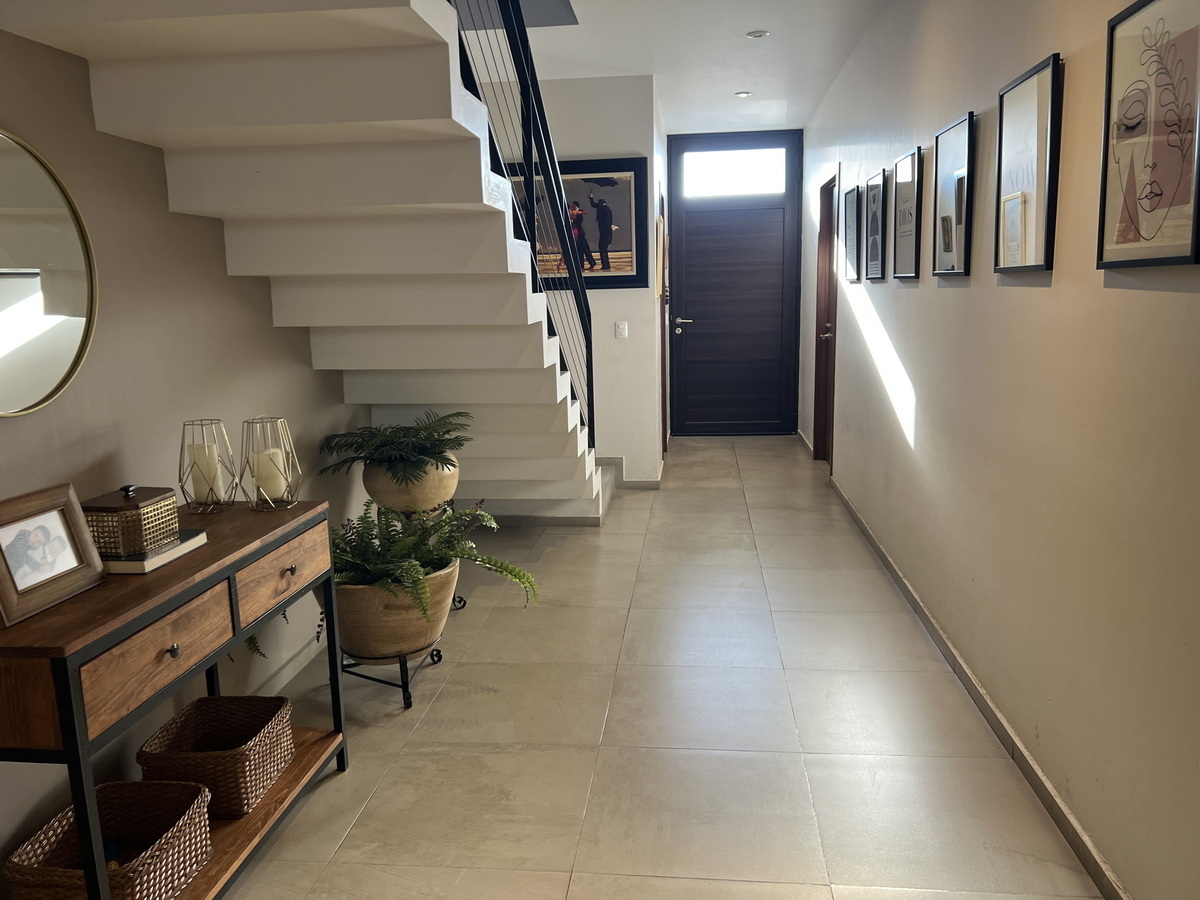 EN PLANTA ALTA CUENTA CON SALA TV, 3 AMPLIAS RECÁMARAS CON PISO LAMINADO, PREPARACIÓN PARA AIRE ACONDICIONADO, DOBLE CRISTAL EN 2 RECÁMARAS QUE AYUDA A DISMINUIR EL RUIDO EXTERIOR BRINDANDO MAYOR COMODIDAD, PERSIANAS SHEER Y BLACK OUT EN RECÁMARAS Y SALA COMEDOR. LA RECAMARA PRINCIPAL CUENTA CON BAÑO Y WALKING CLOSET, LAS OTRAS 2 COMPARTEN BAÑO, CLOSET DE BLANCOS, 2 CAJONES DE ESTACIONAMIENTO CON PORTÓN ELÉCTRICO. LA CASA CUENTA CON HIDRONEUMÁTICO, CALENTADOR SOLAR Y PANELES SOLARES, BOILER DE PASO, 2 CAJONES DE ESTACIONEMIENTO CON PORTÓN ELÉCTRICO. SOLO TIENE UN VECINO LATERAL YA QUE DEL OTRO LADO COLINDA CON EL COTO AMATE. EN RENTA INCLUYE MANTENIMIENTO, NO ESTUDIANTES NI MASCOTAS.