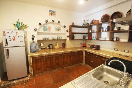 Got guests? Need a creative space? This charming standalone casita in the back has its own little world—complete with a cozy living area and fireplace, a compact kitchen (with a water filter and fridge), and an upstairs suite with a queen bed, bathroom, closet, and a *private terrace*. There’s even a rooftop with a dining spot and amazing views of the Parroquia—perfect for sunset dinners under the stars. Surrounded by plants and a bamboo tree, it’s a total oasis.