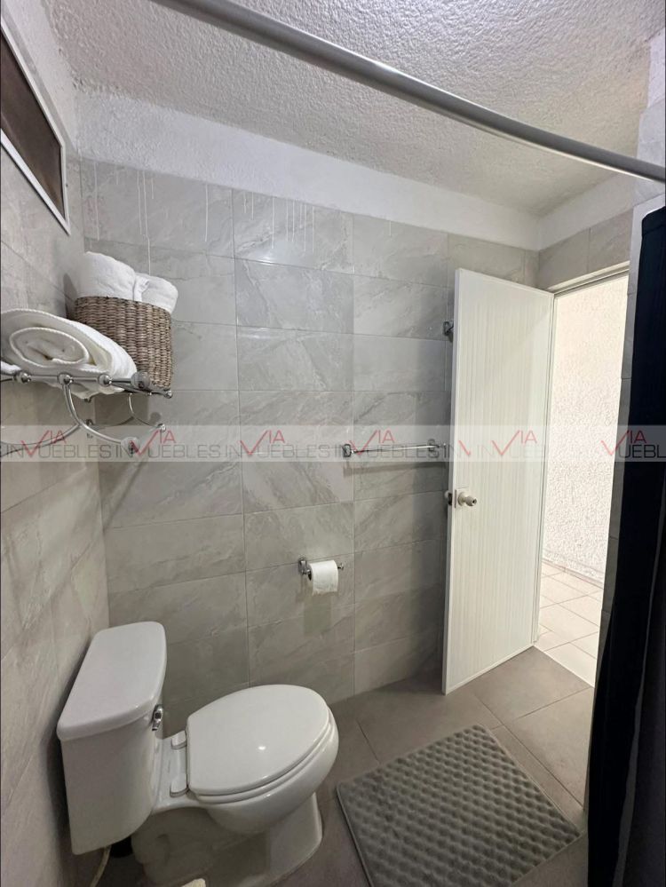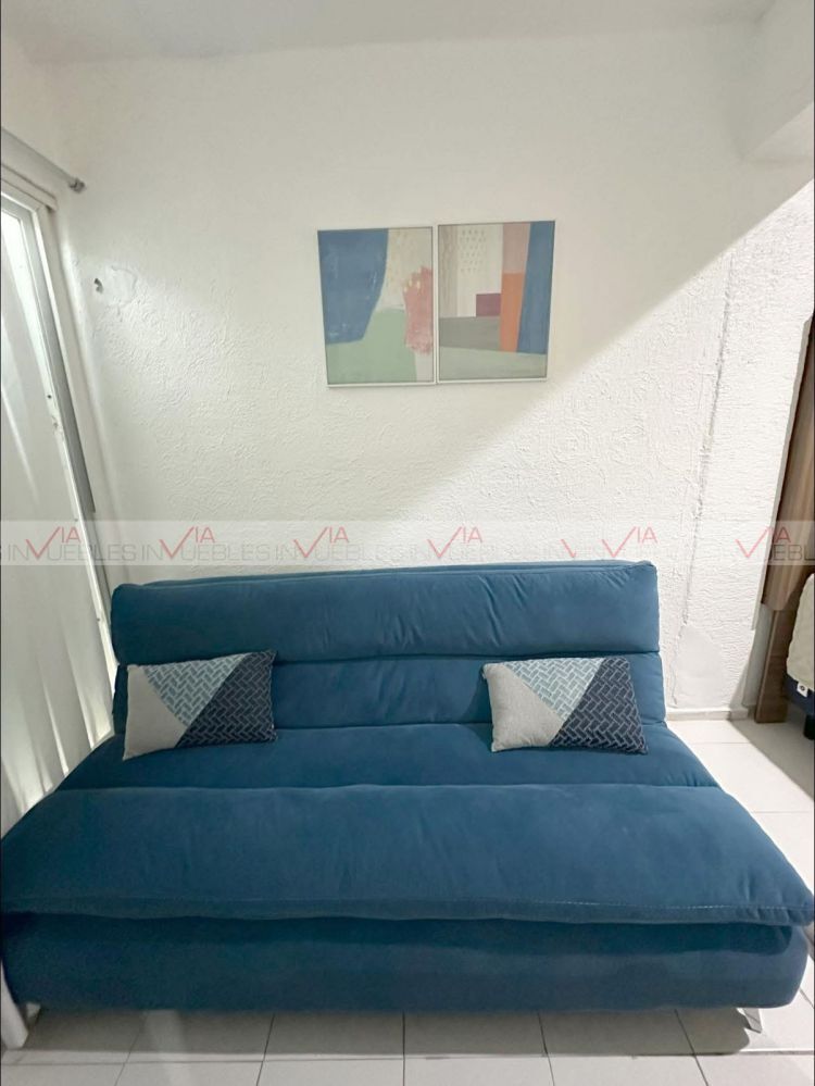 El departamento es de 80 mts2 incluidos los 12 mts2 de jardin en la parte posterior, cuenta con un área de cocina equipada con lo siguiente: comedor, bufetero, refrigerador, microondas, dispensador de agua y minisplit
