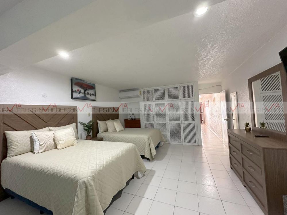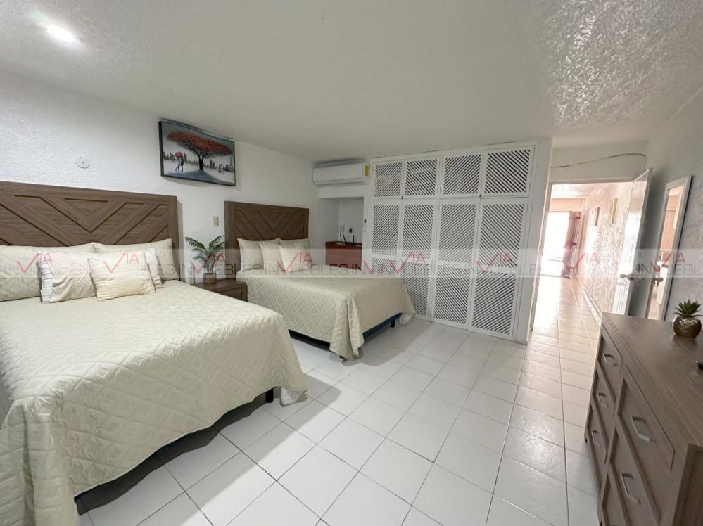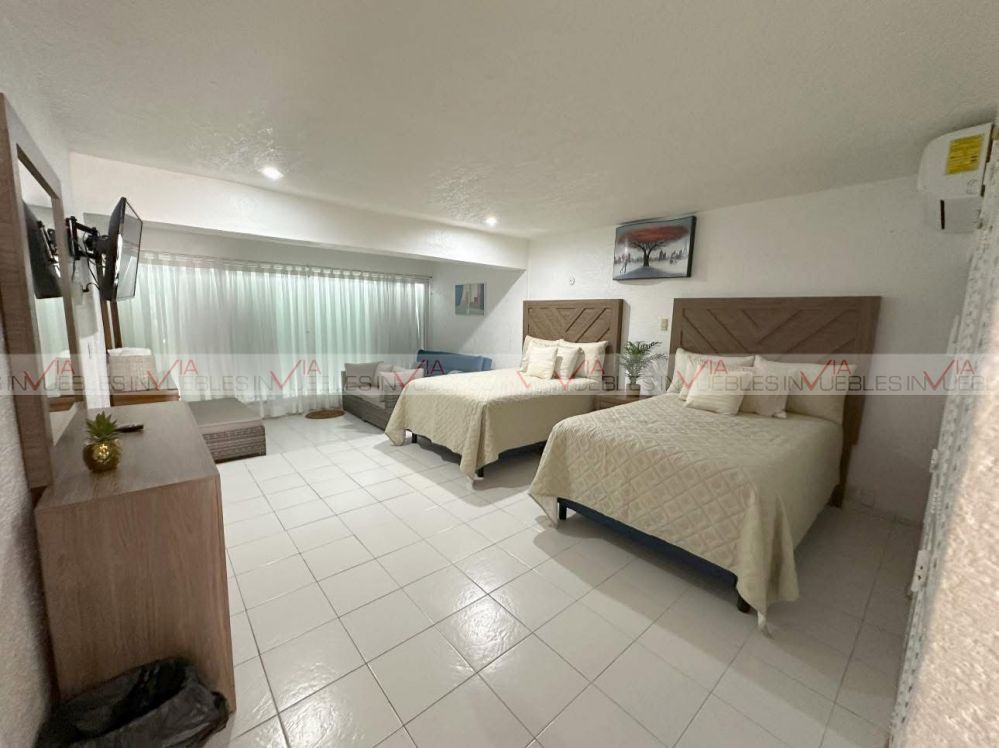 Cuenta con una recamara equipada con closet, dos camas queen, sofa cama, dos cajoneras, televisión y minisplit.