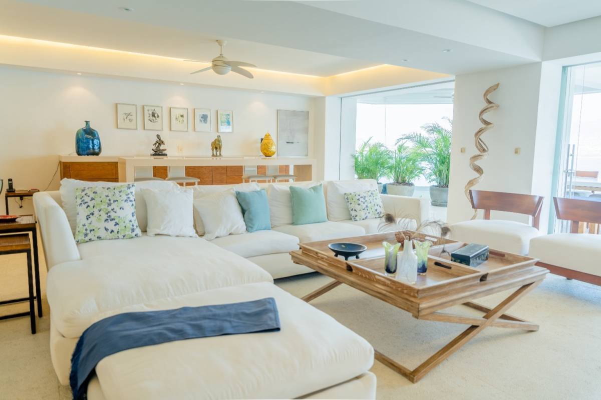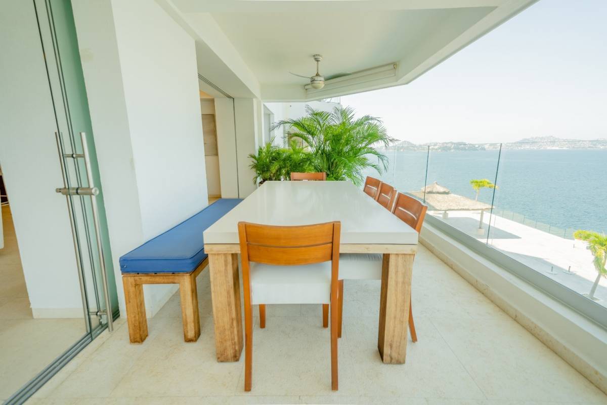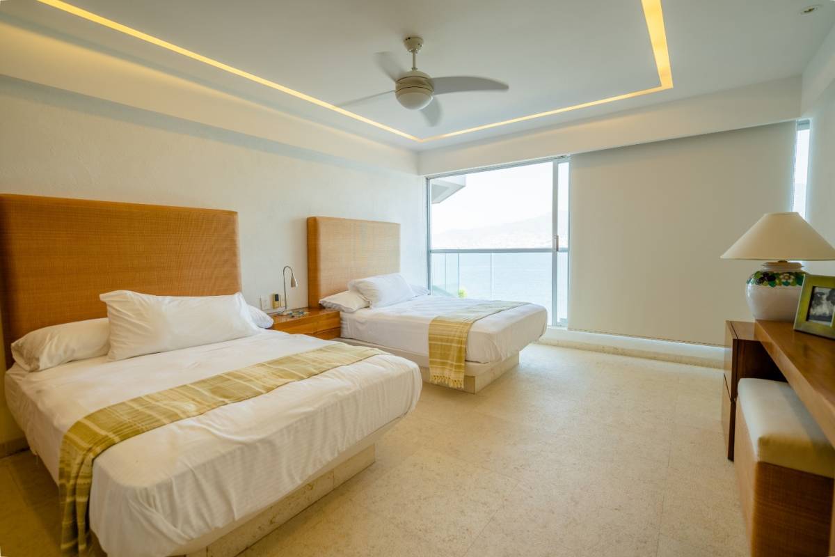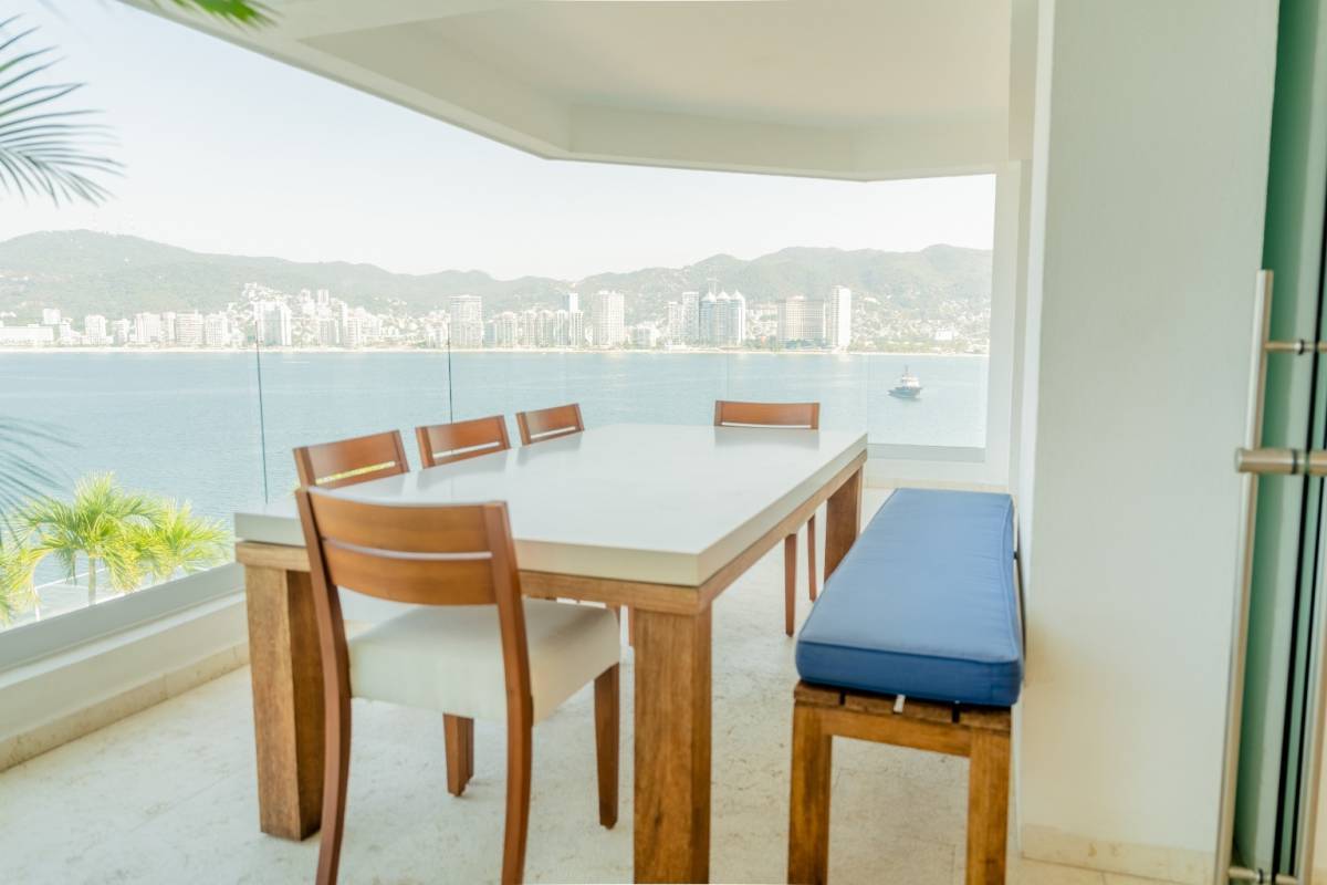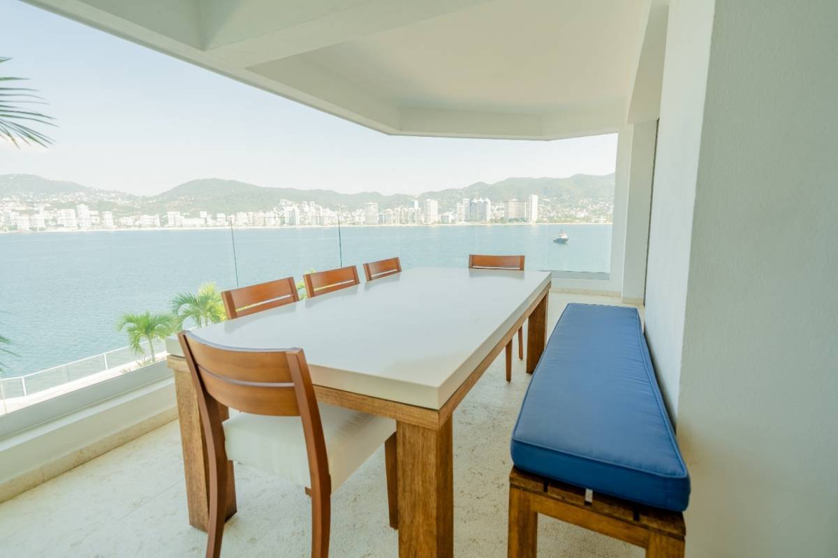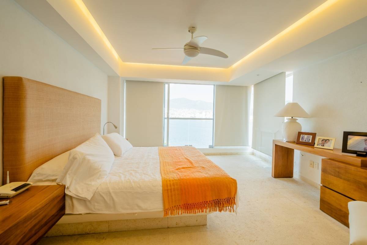 Podría decir, desde mi punto de vista, que es uno de los departamentos más bonitos que hemos tenido a la venta. Fue remodelado hace un par de años y quedó muy bien. Tiene pisos de mármol, carpintería de tzalam (le da un toque de lujo), y detalles de iluminación en todos los espacios. Y la vista es totalmente abierta a la bahía de Acapulco. De las mejores porque ningún edificio la obstruye.