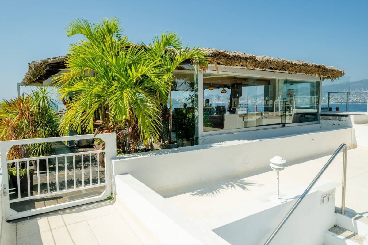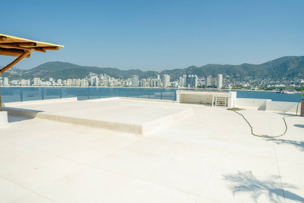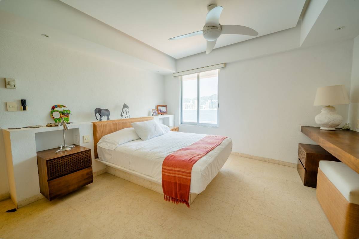 Cuenta con cuatro recámaras amplias e iluminadas, una de ellas se usa actualmente como estudio (también tiene baño), 4.5 baños, baño de servicio, área de lavado, terraza con vista a la bahía de Acapulco.