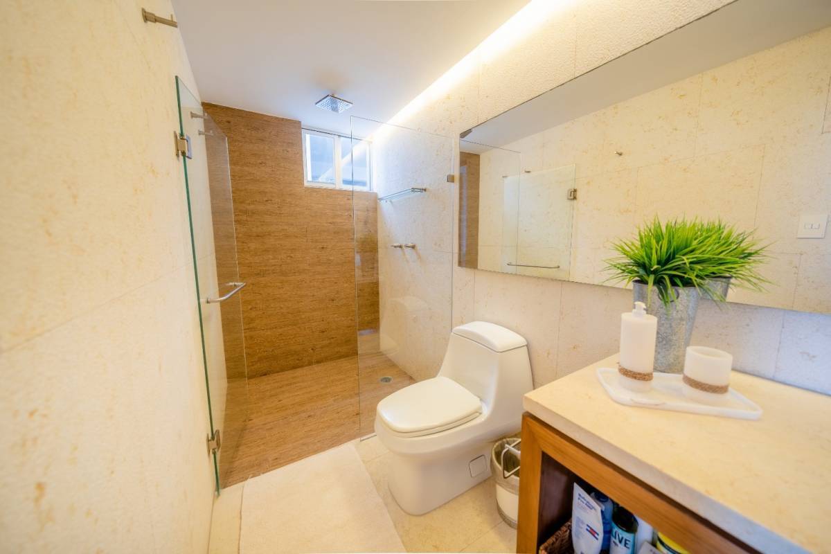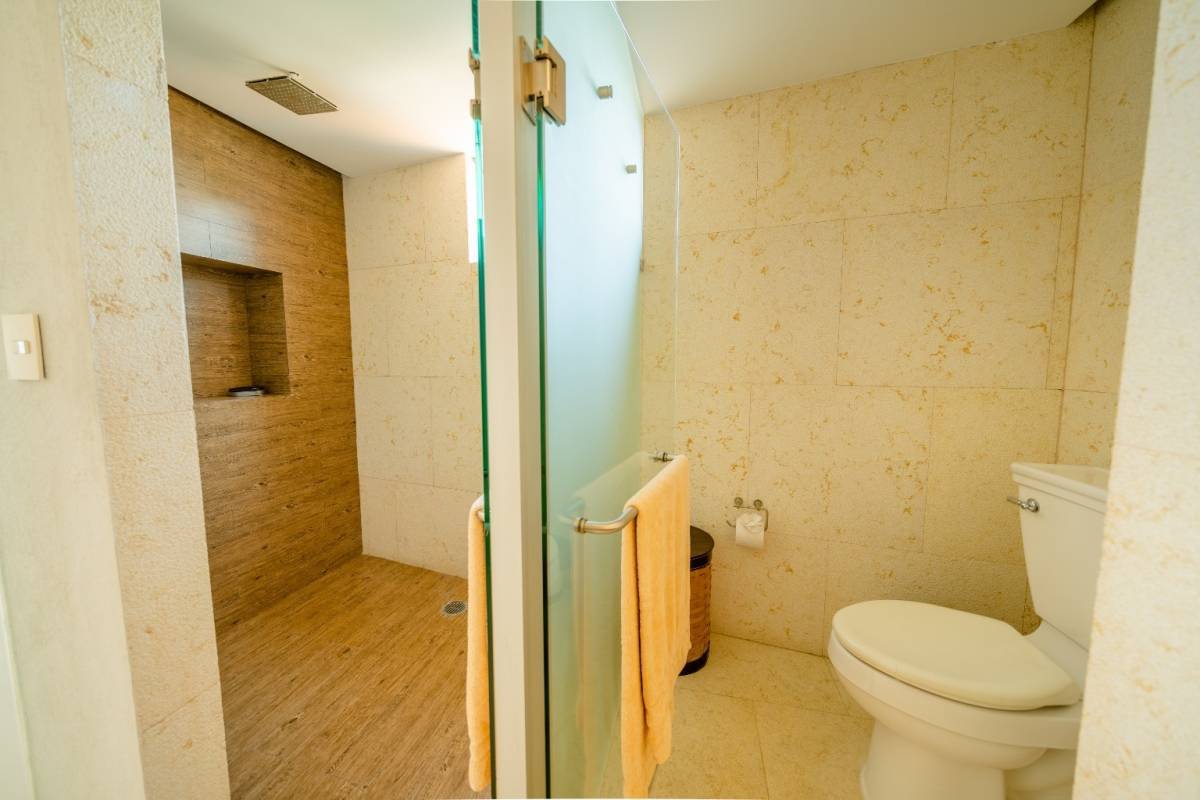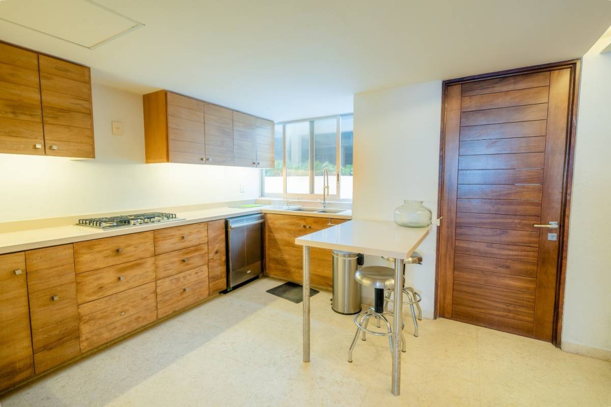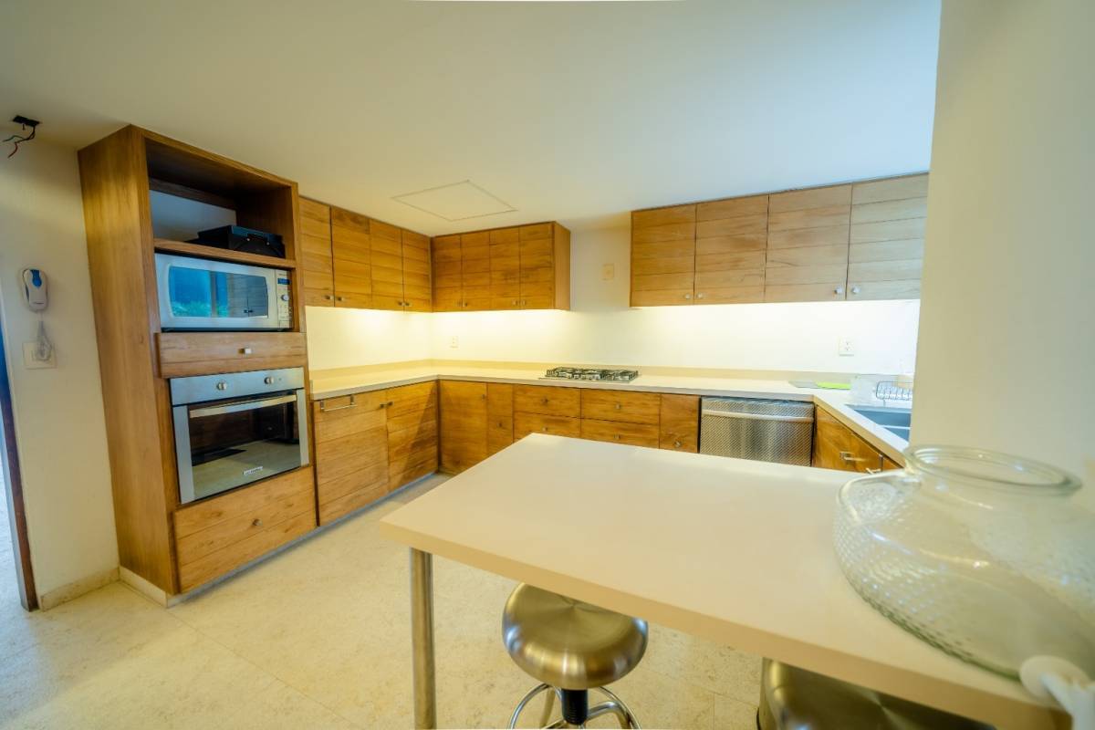 Cuenta con cuatro recámaras amplias e iluminadas, una de ellas se usa actualmente como estudio (también tiene baño), 4.5 baños, baño de servicio, área de lavado, terraza con vista a la bahía de Acapulco.