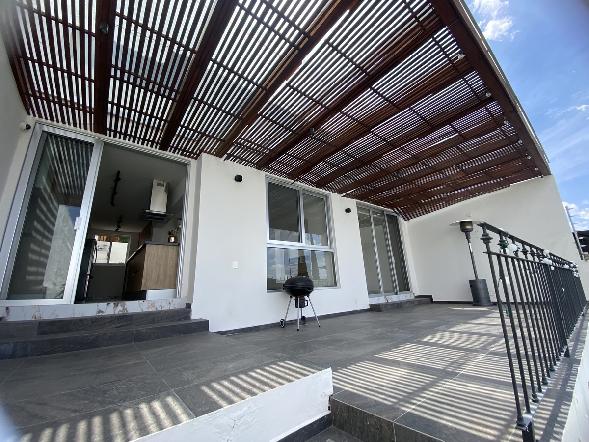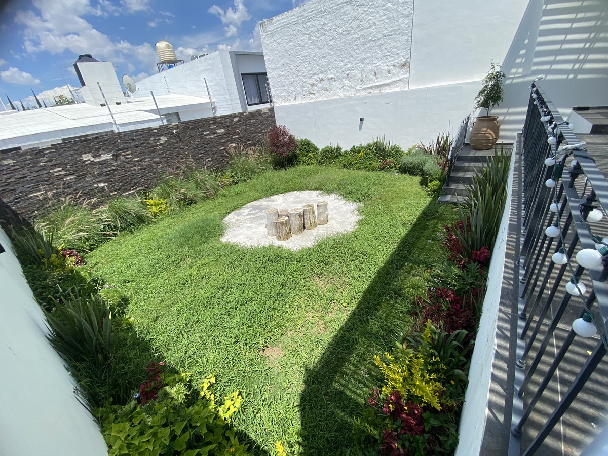 Detalles en Planta Baja, cochera para dos autos, estudio, sala, comedor, medio baño, cocina espectacular, con acabados de lujos, suficiente espacio de alacenas, con un toque de decoración único, terraza muy amplia y un bello jardín, también en esa misma planta encontrarás cuarto de lavado, patio, bodega.