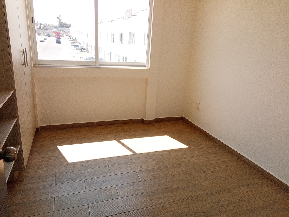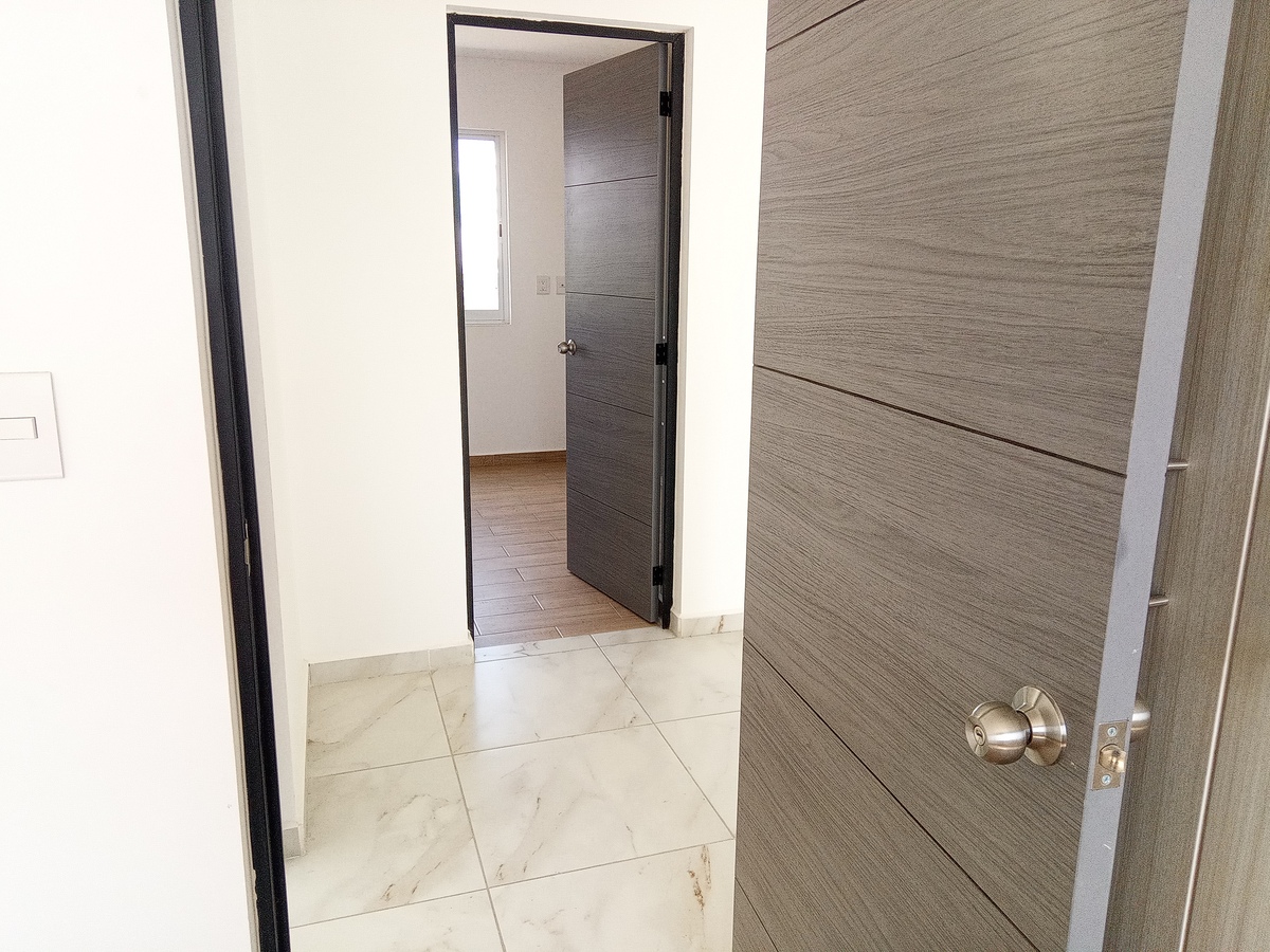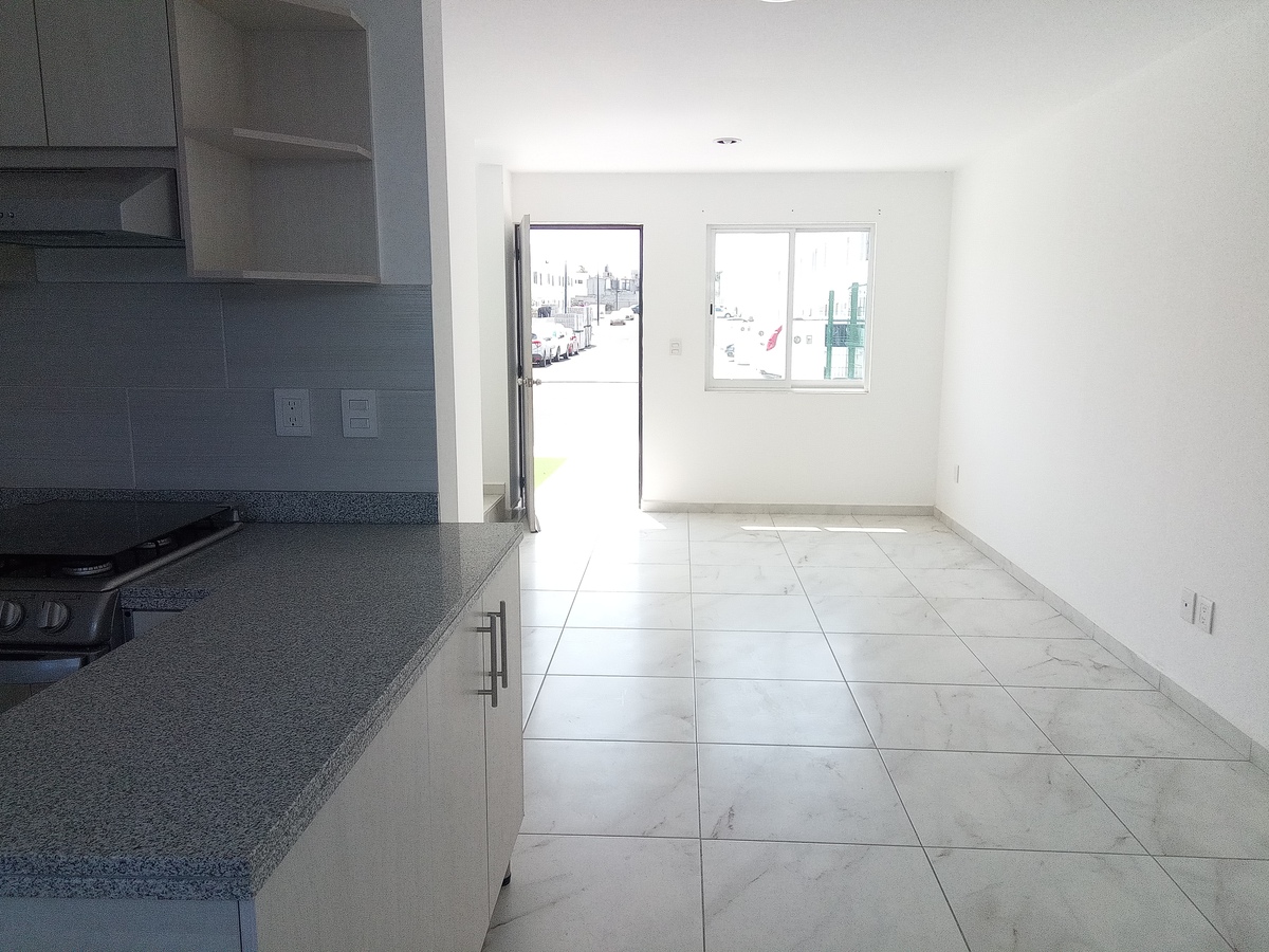 Cuenta con espacio de sala. comedor, cocina integral, medio baño, patio trasero.
