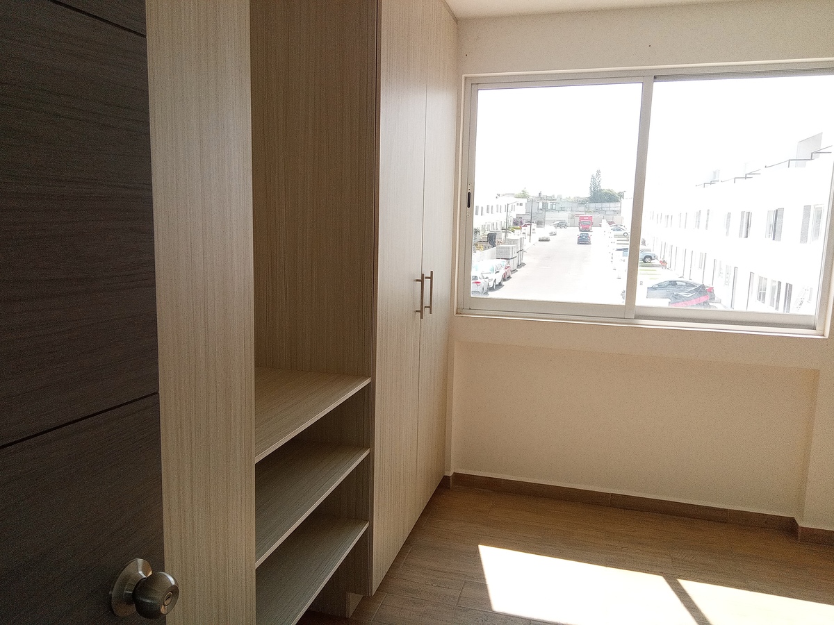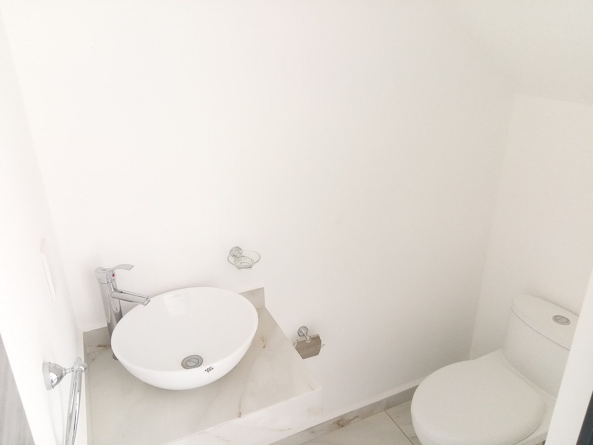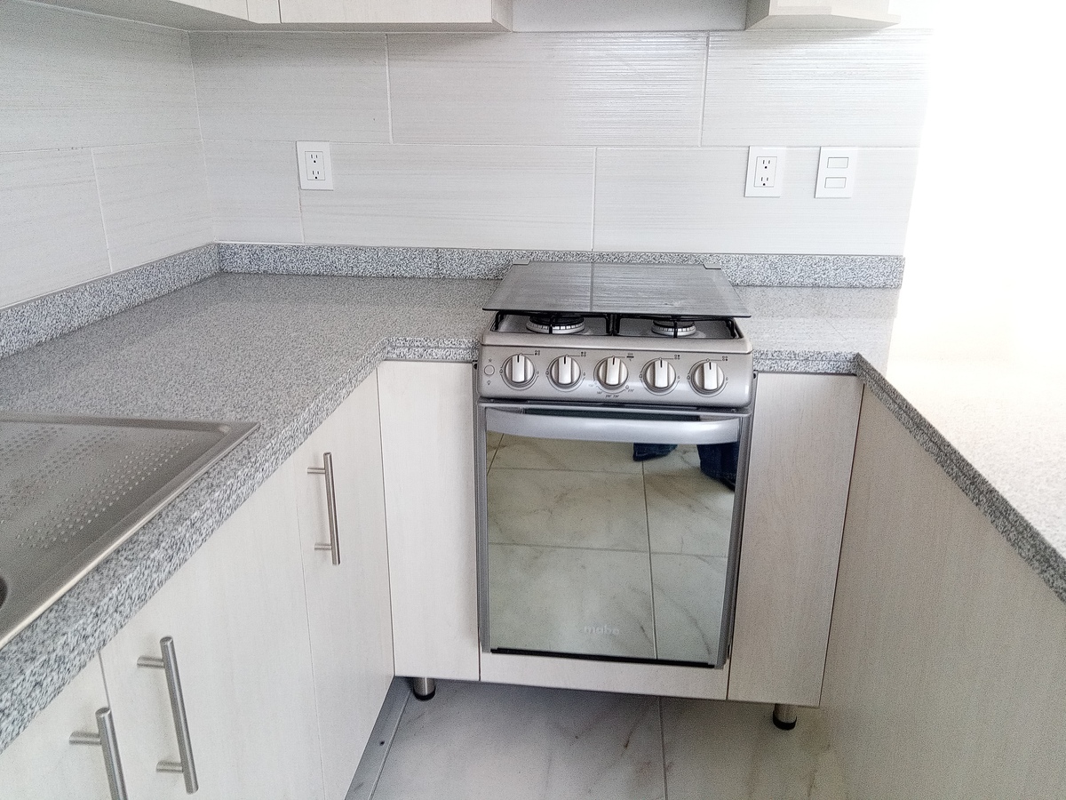 Cuenta con espacio de sala. comedor, cocina integral, medio baño, patio trasero.