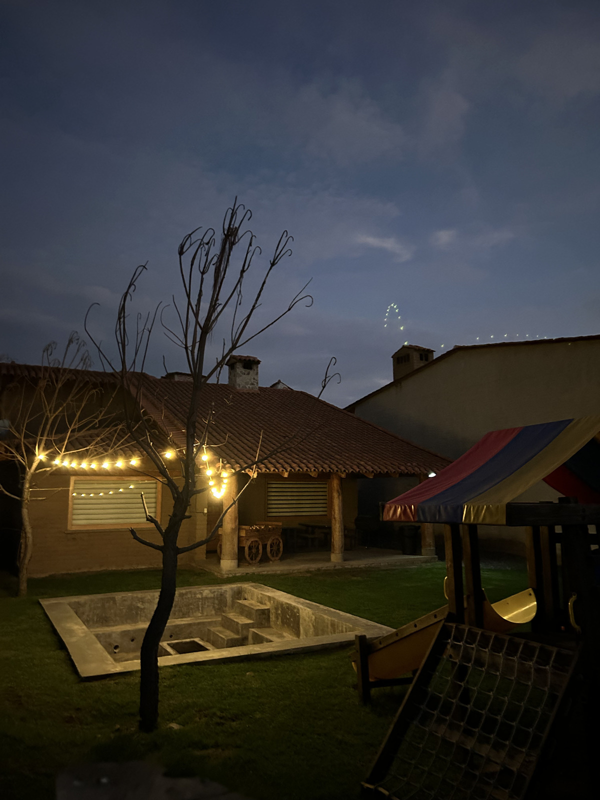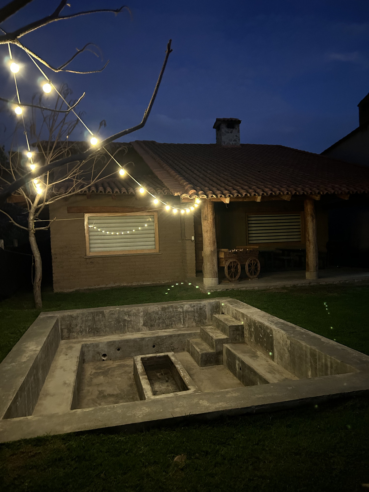 La Cabaña cuenta con un amplio jardín equipado con juegos infantiles y un fogatero, consta de 3 habitaciones y 3 baños, sala con chimenea, cocina integral y un cobertizo grande en la parte trasera para almacenaje.
