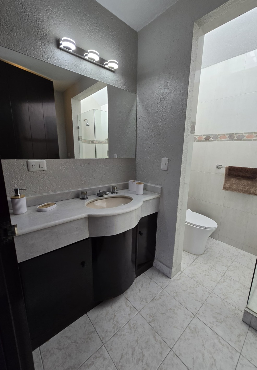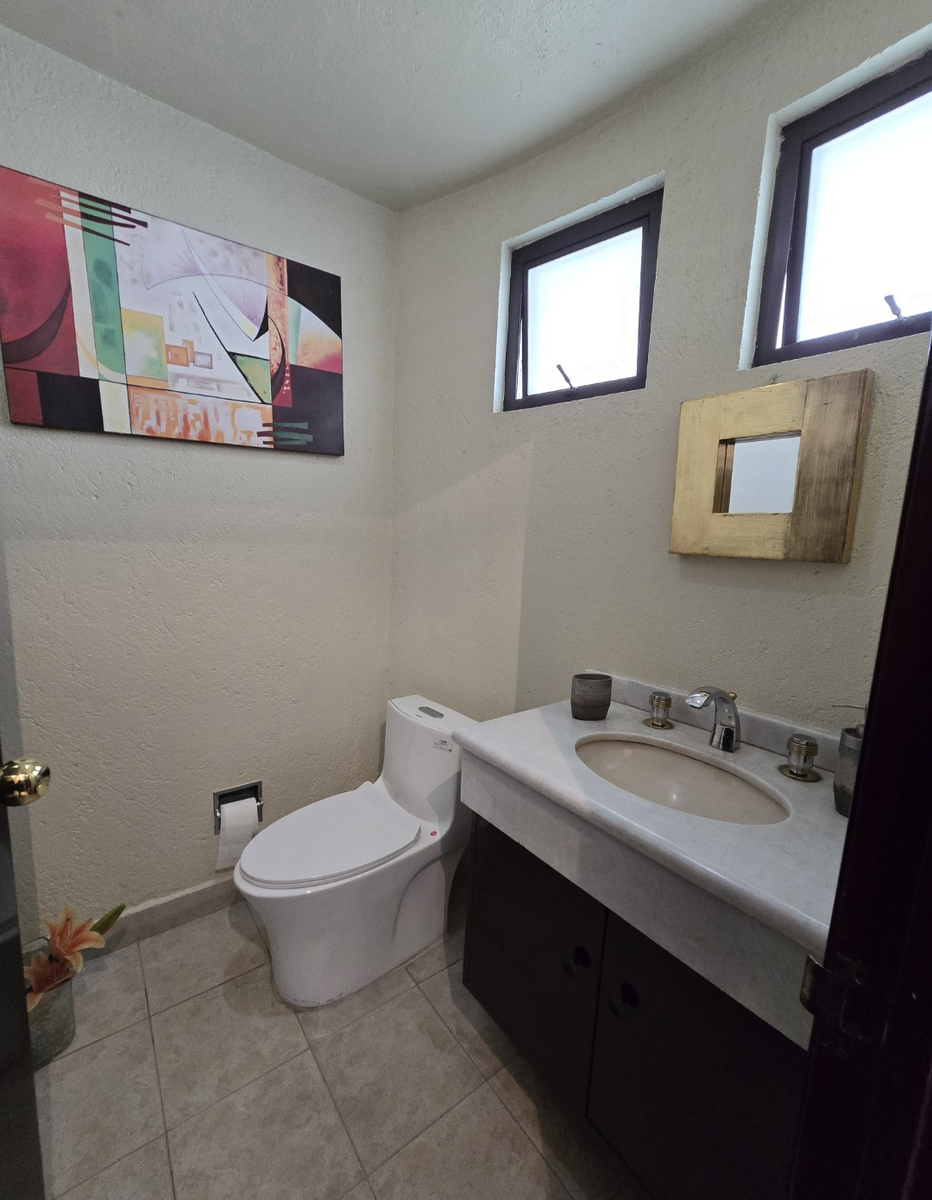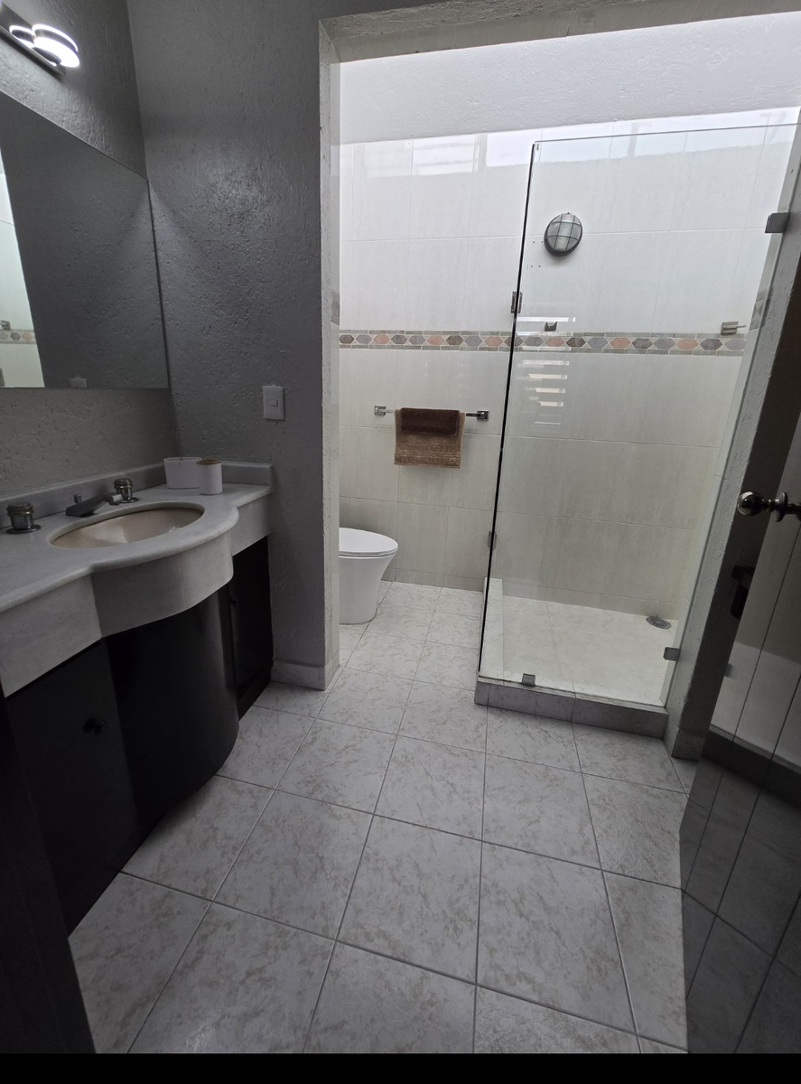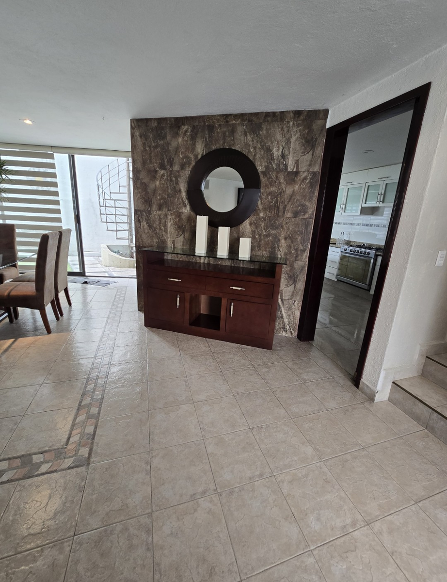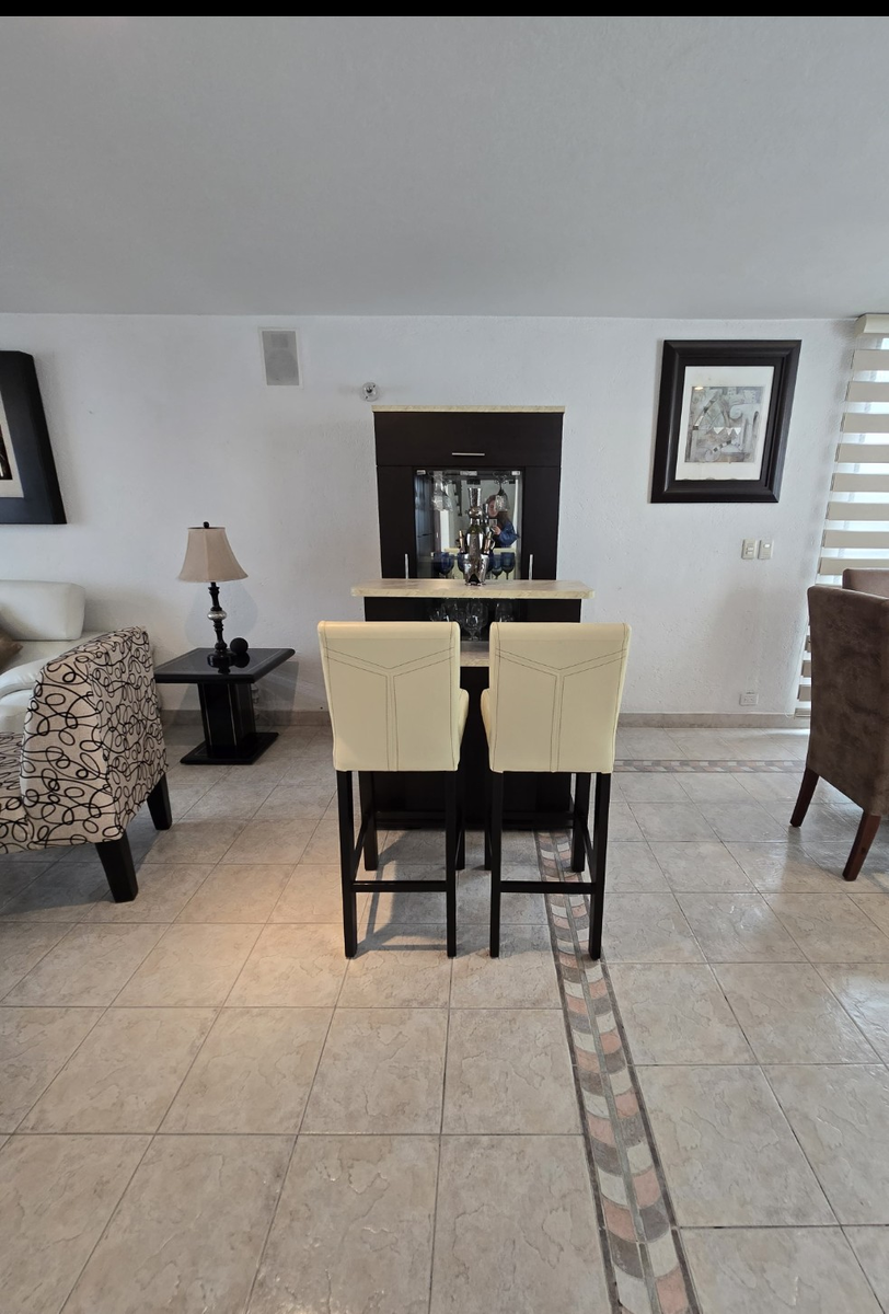 Encantadora y remodelada casa que cuenta con 3 recamaras, y 4 baños, ubicada en fraccionamiento cerrado con seguridad las 24 hrs, además de un jardín cuenta con family room con terraza en el tercer piso, la cocina es amplia y la sala y comedor muy acogedores, cisterna y 2 estacionamientos.