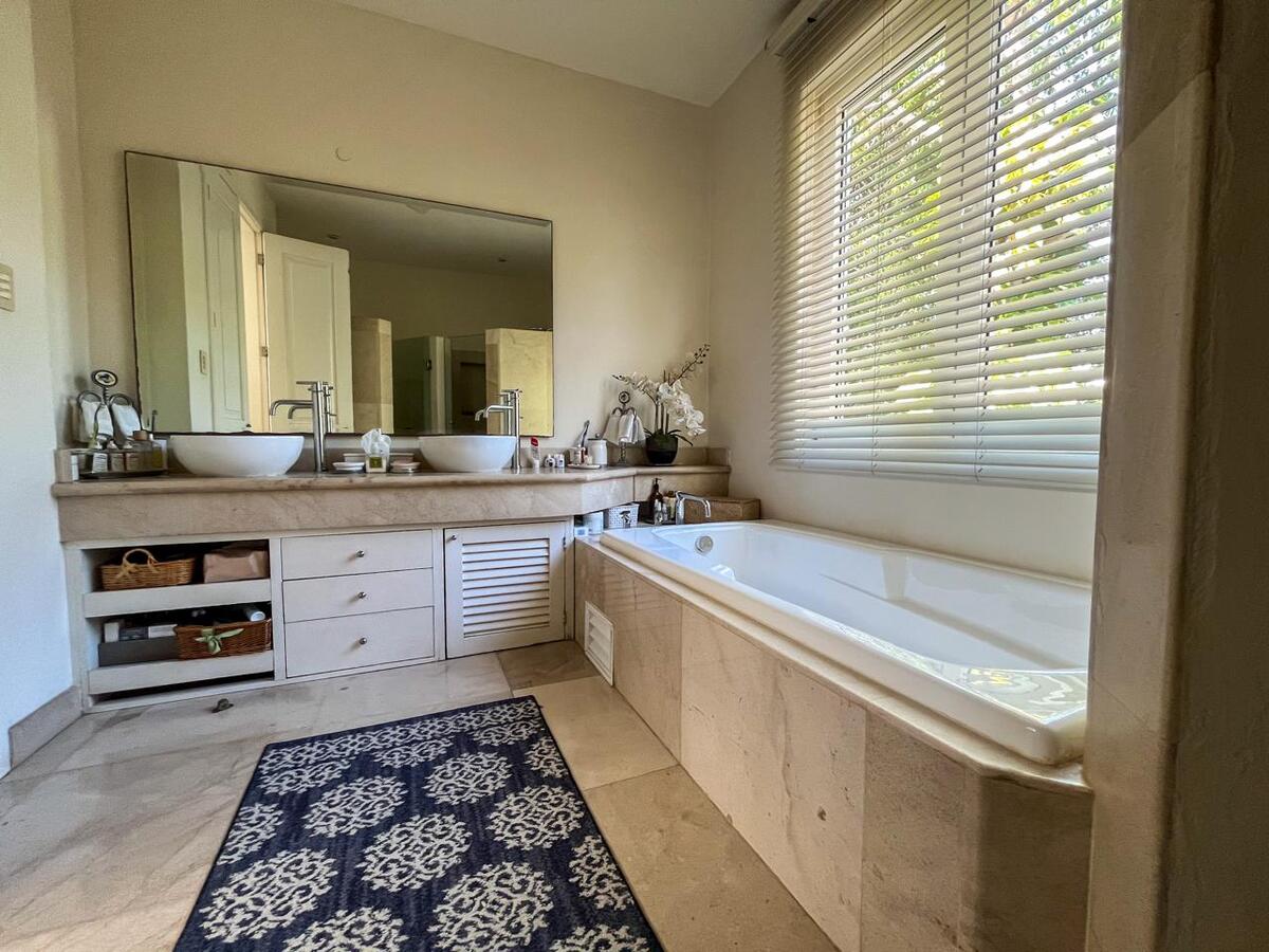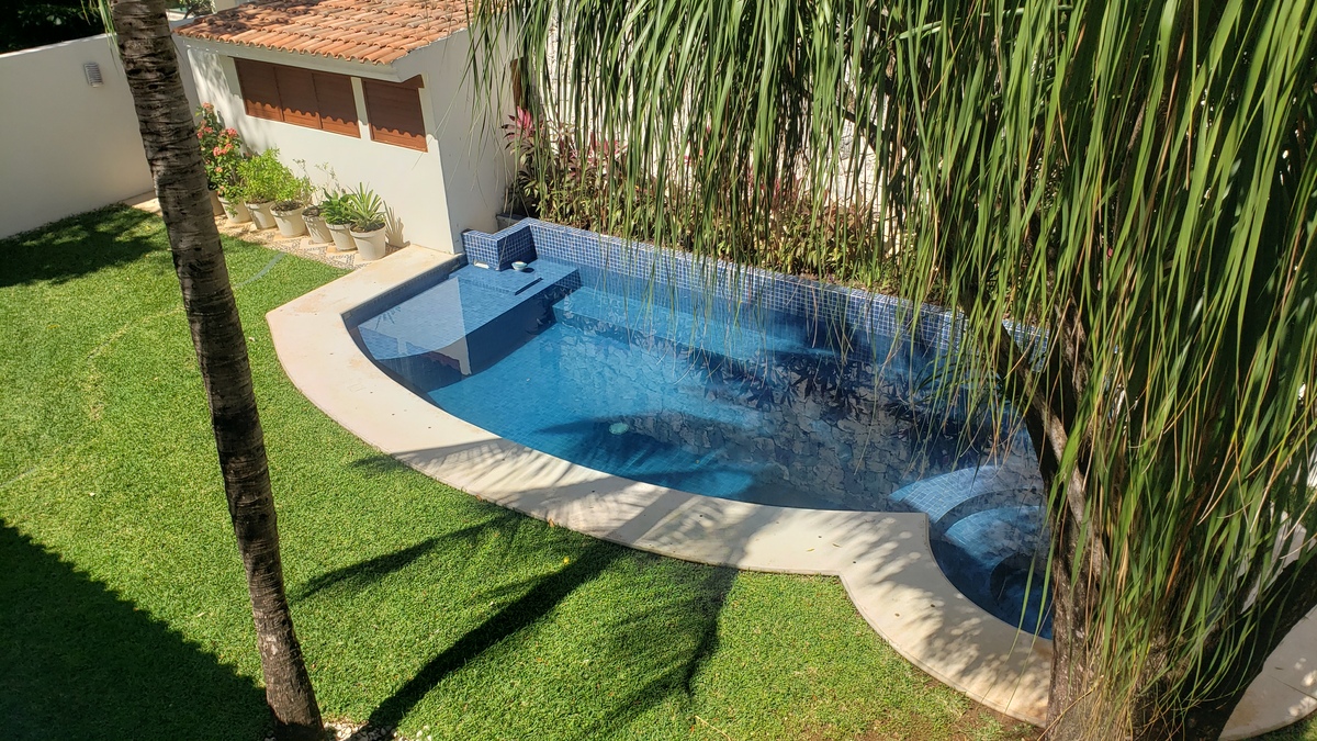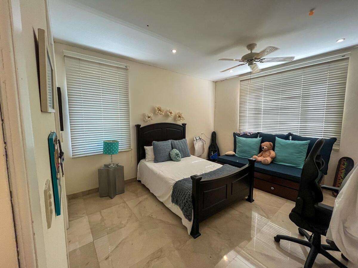 For sale, a cozy house in the Villa Magna Residential development in Cancún, Quintana Roo. With a total area of 537 m2, this house has 3 bedrooms, 4 full bathrooms, 2 half bathrooms, and space for 2 cars in the garage. The property offers an east orientation and is in excellent condition. Among its services, it features a covered terrace, garden, and swimming pool (with a small studio with a bathroom). In the common areas of the residential complex: basketball court, reading spaces, soccer field, parks on every street.
